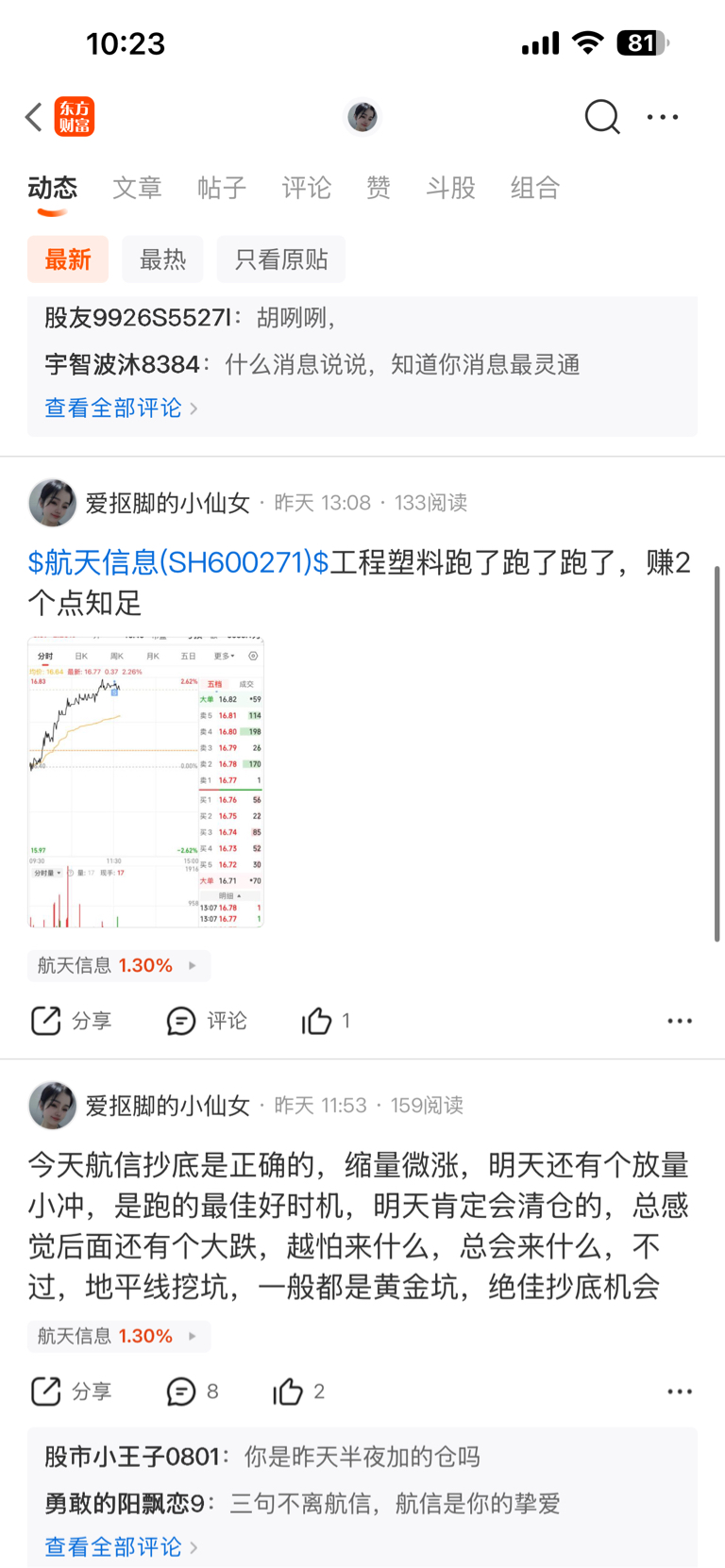 $航天信息(SH600271)$ 今天果然放量上冲小涨,慢慢送慢慢清仓,才能把手中的筹码卖在相对较高的位置