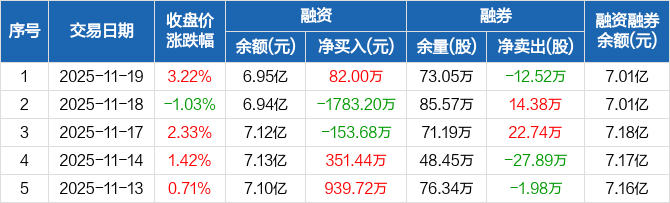 航天信息融资融券信息显示,2025年11月19日融资净买入82万元;融资余额6.95亿元,较前一日增加0.12%。