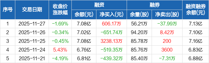 航天信息:融资净买入606.17万元,融资余额7.08亿元(11-27)