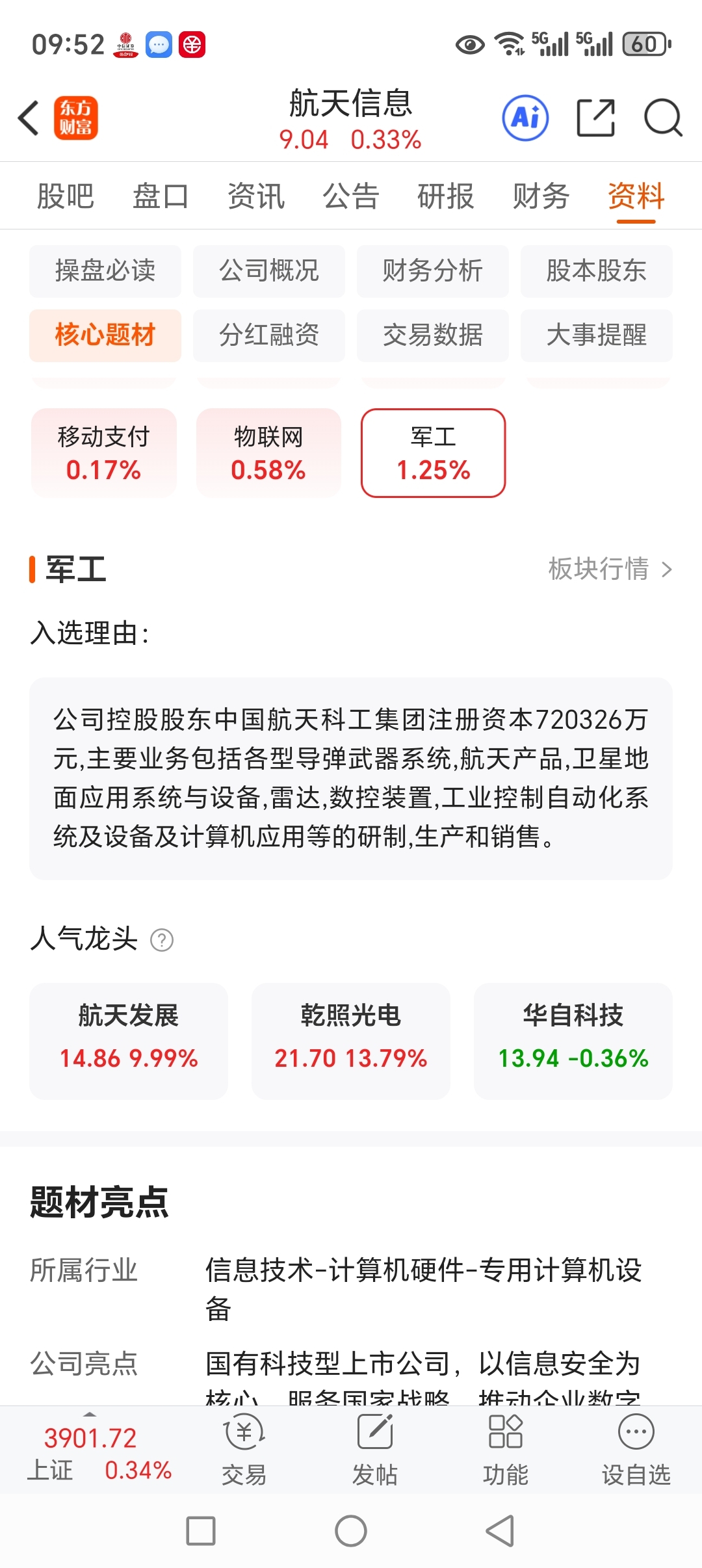 $航天信息(SH600271)$ 这个咋没有商业航天概念。