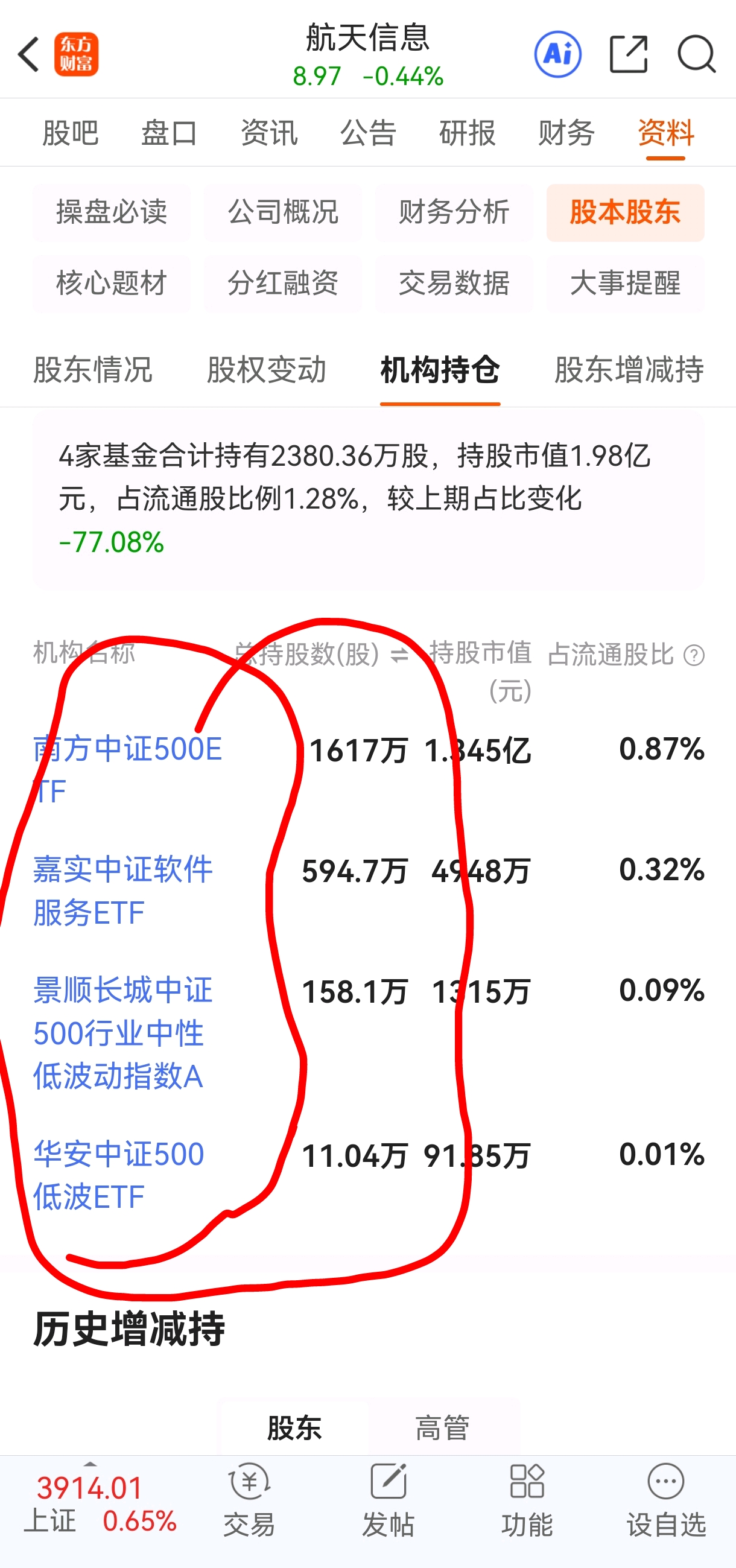 知道航天信息,为什么不涨?因为航天信息被踢出【500指数】几个500指数基金,在