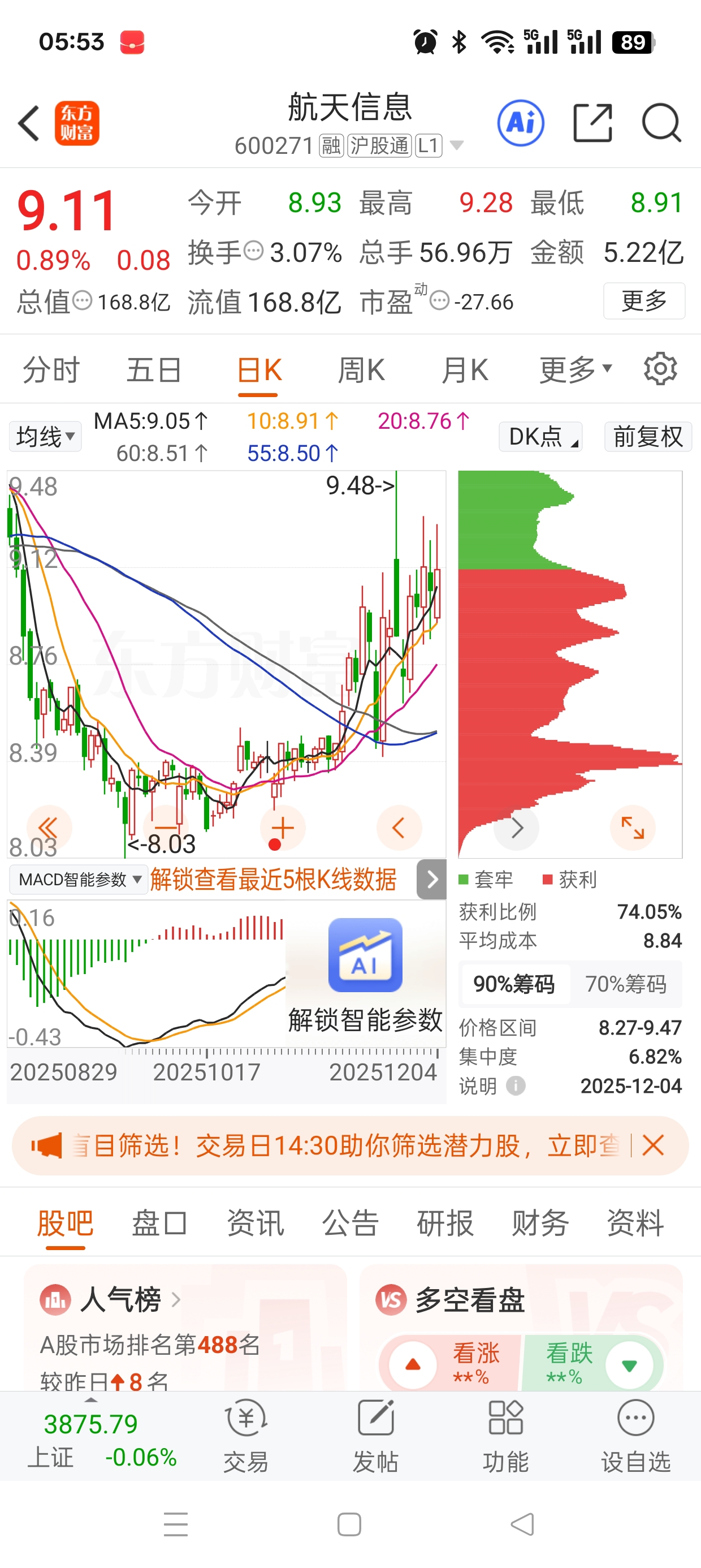 航天信息k线分析,上涨趋势明显