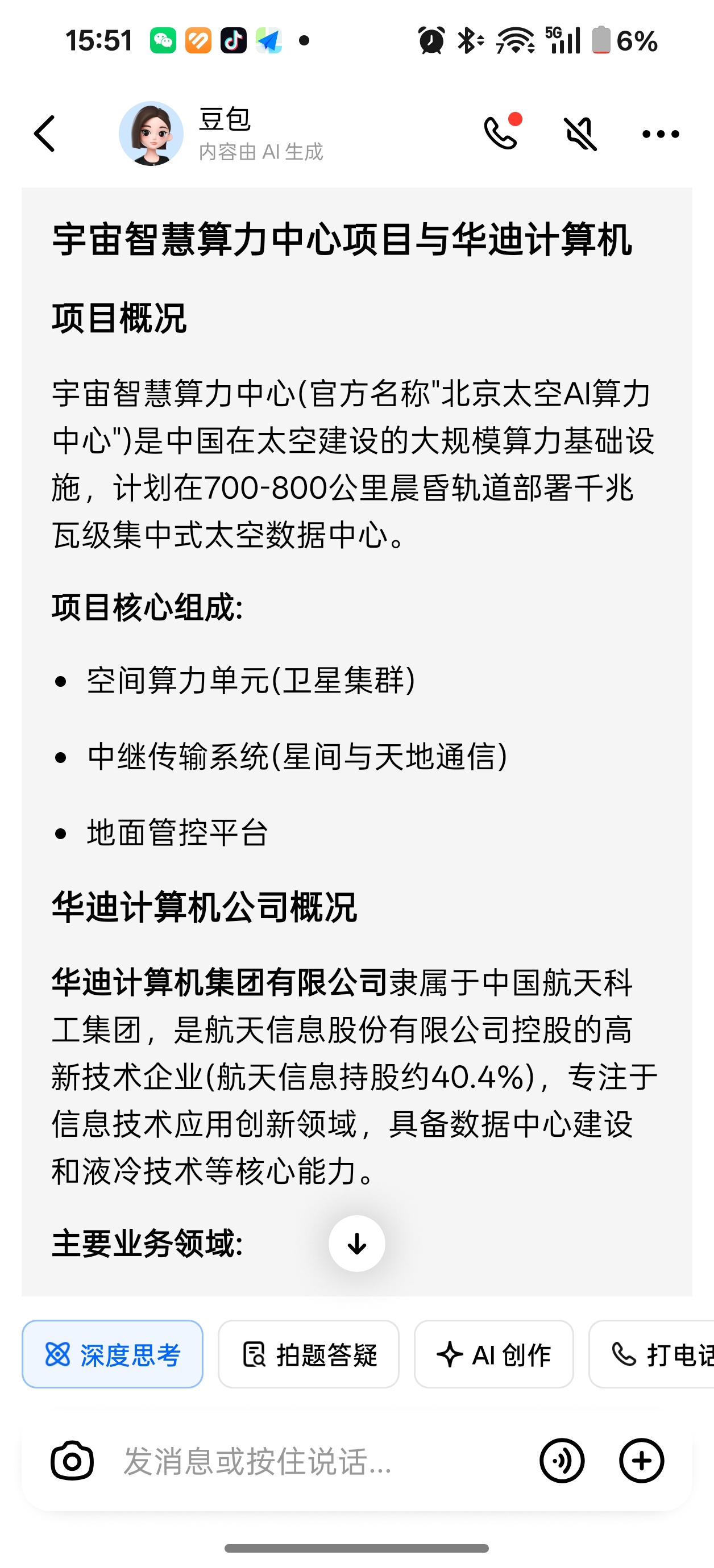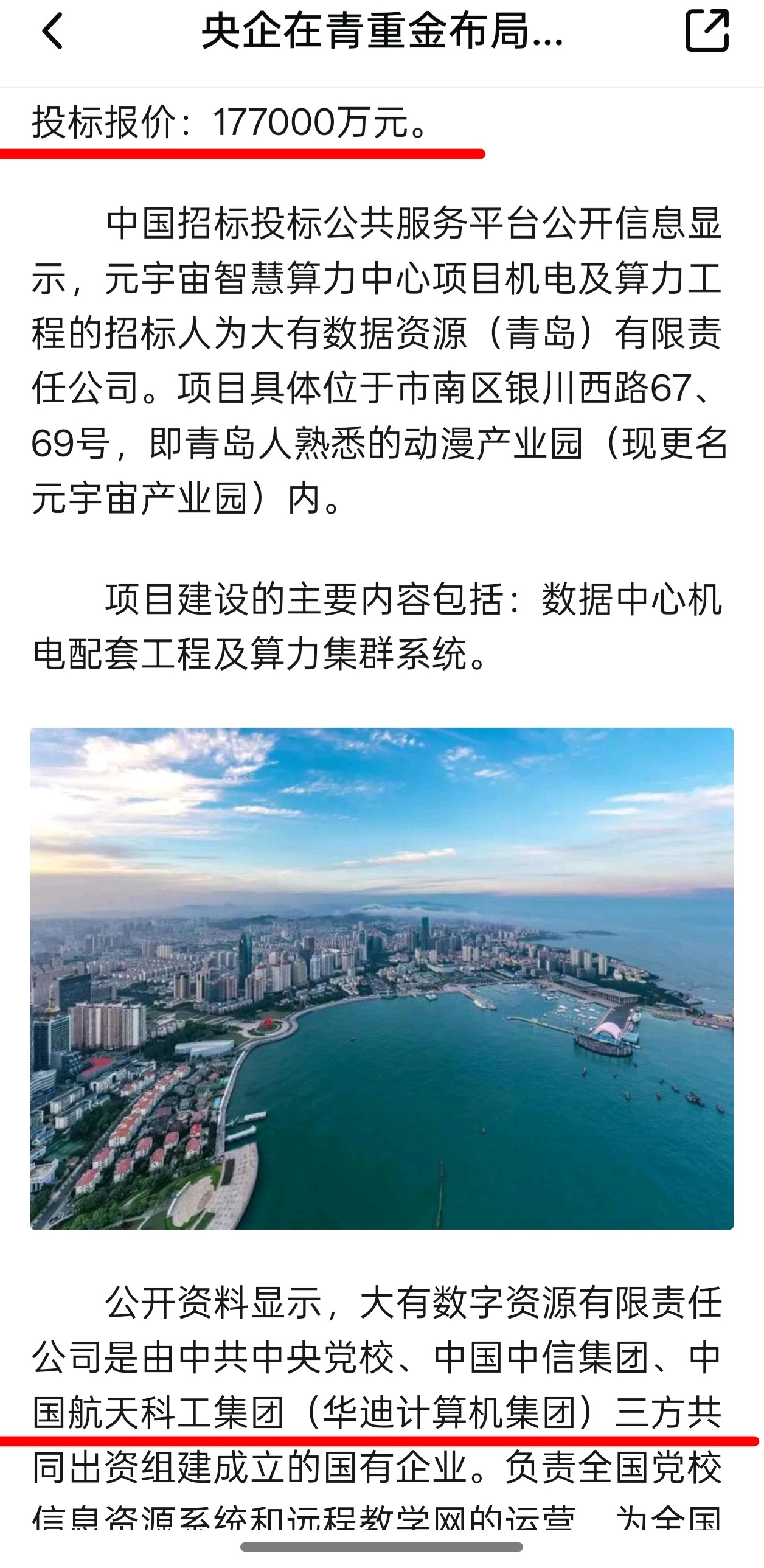 一个青岛宇宙算力,一个北京太空算力,都有华迪计算机集团(航天信息是最大股东)