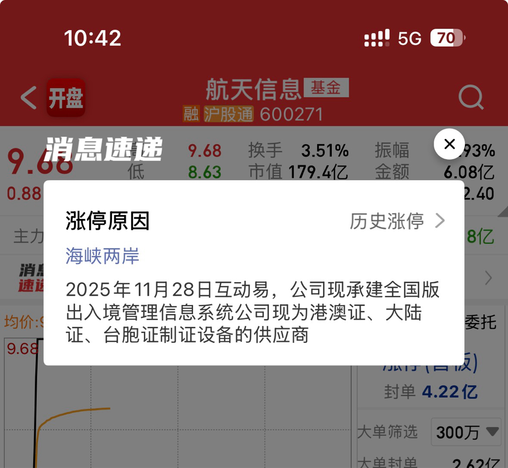 $航天信息(SH600271)$ 统一才是王道,办理台胞证