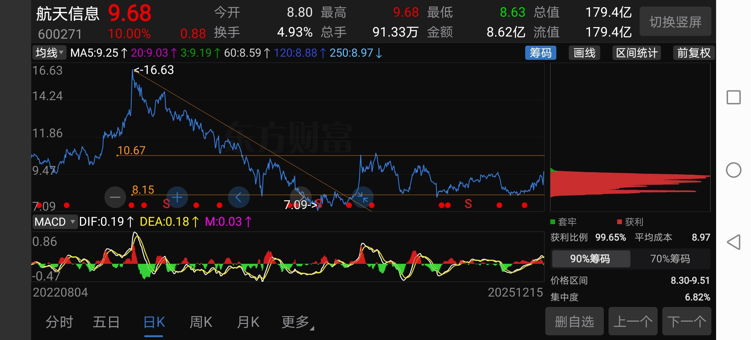 1215三角形整理,横盘宽幅震荡中,金叉涨停板上穿年线,可持续关注