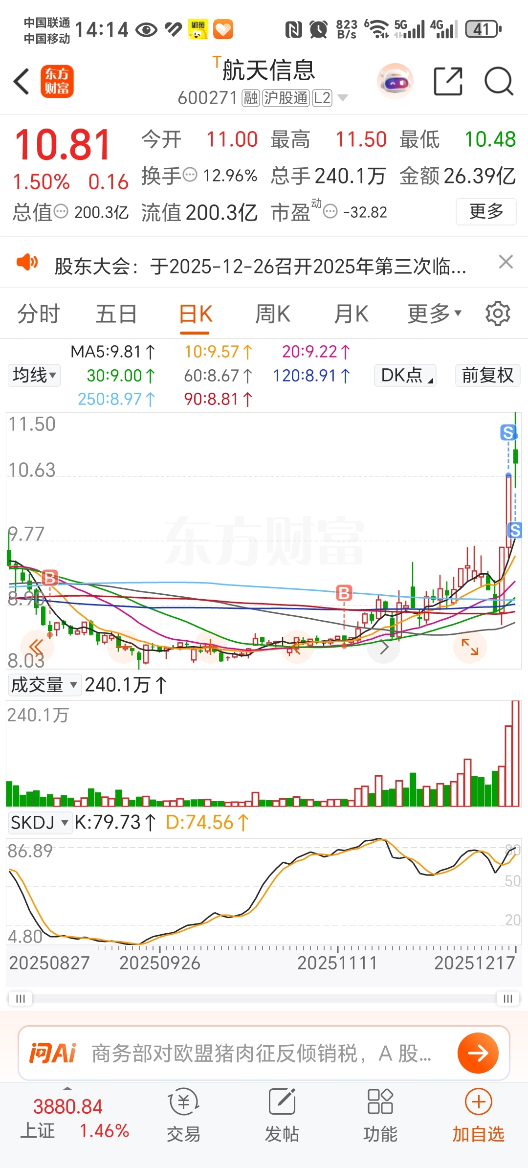 $航天信息(SH600271)$ 做人一定要懂得知足,不要太贪,赚的只要够吃喝就行了