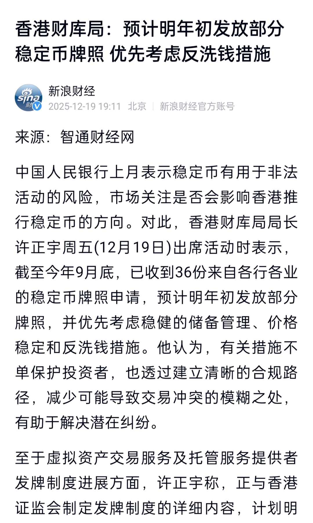 香港预计将于2026年初发放首批稳定币牌照!财联社2025-12-1918:52