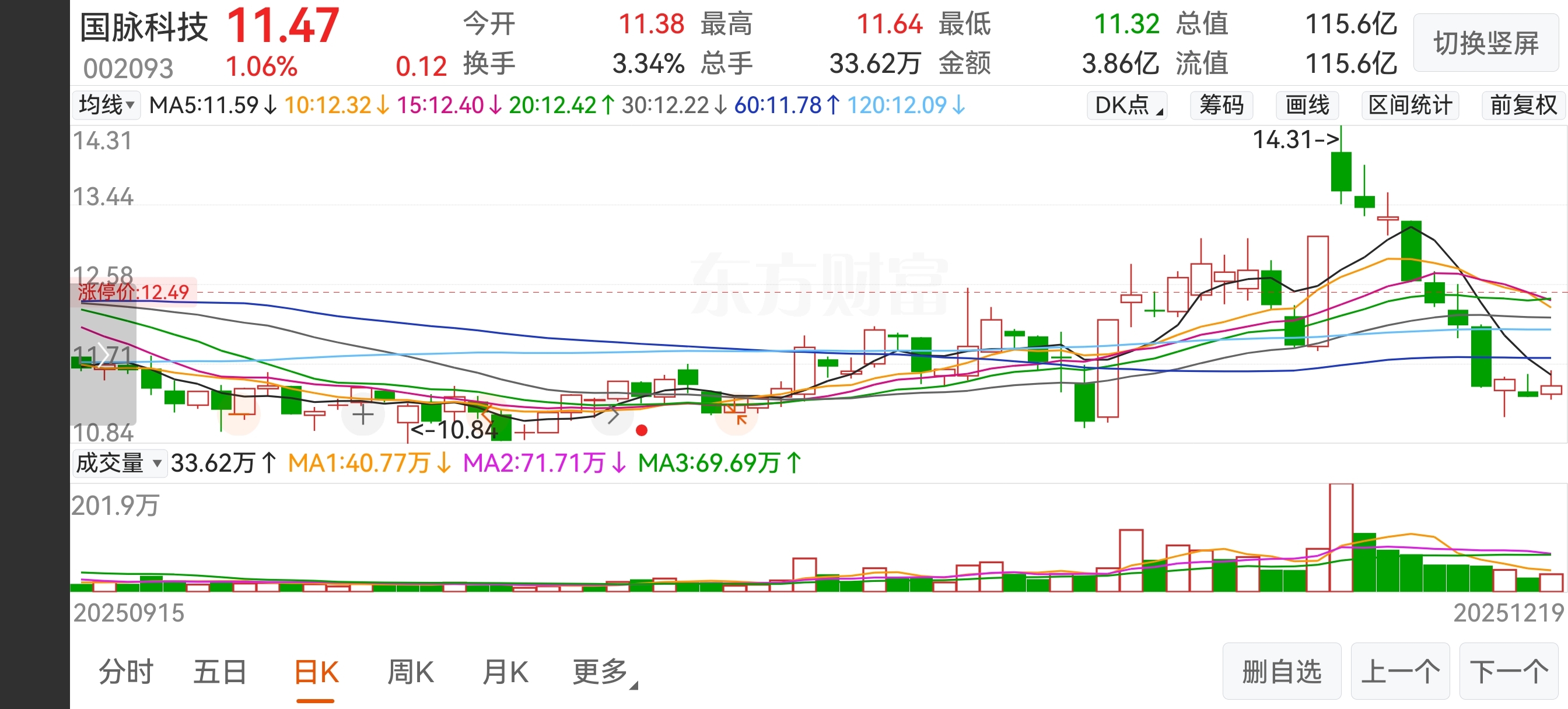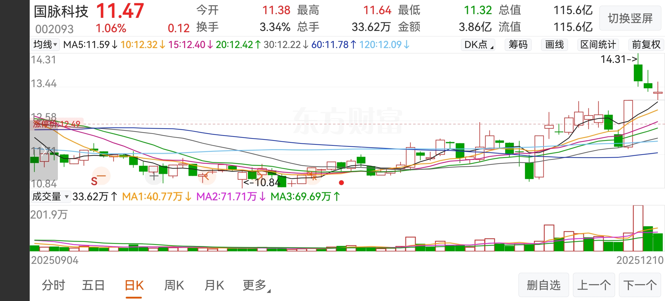 国脉科技002093走势看一下,