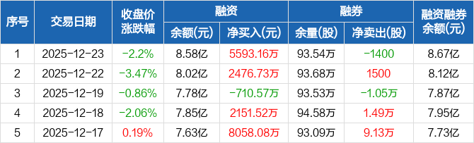 航天信息:融资余额8.58亿元,创近一年新高(12-23)