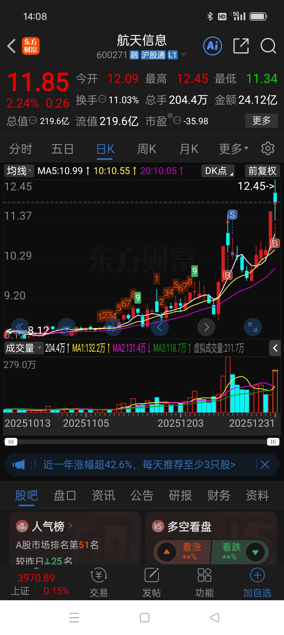 $航天信息(SH600271)$ 你和我有仇吗?买你两次,套我两次