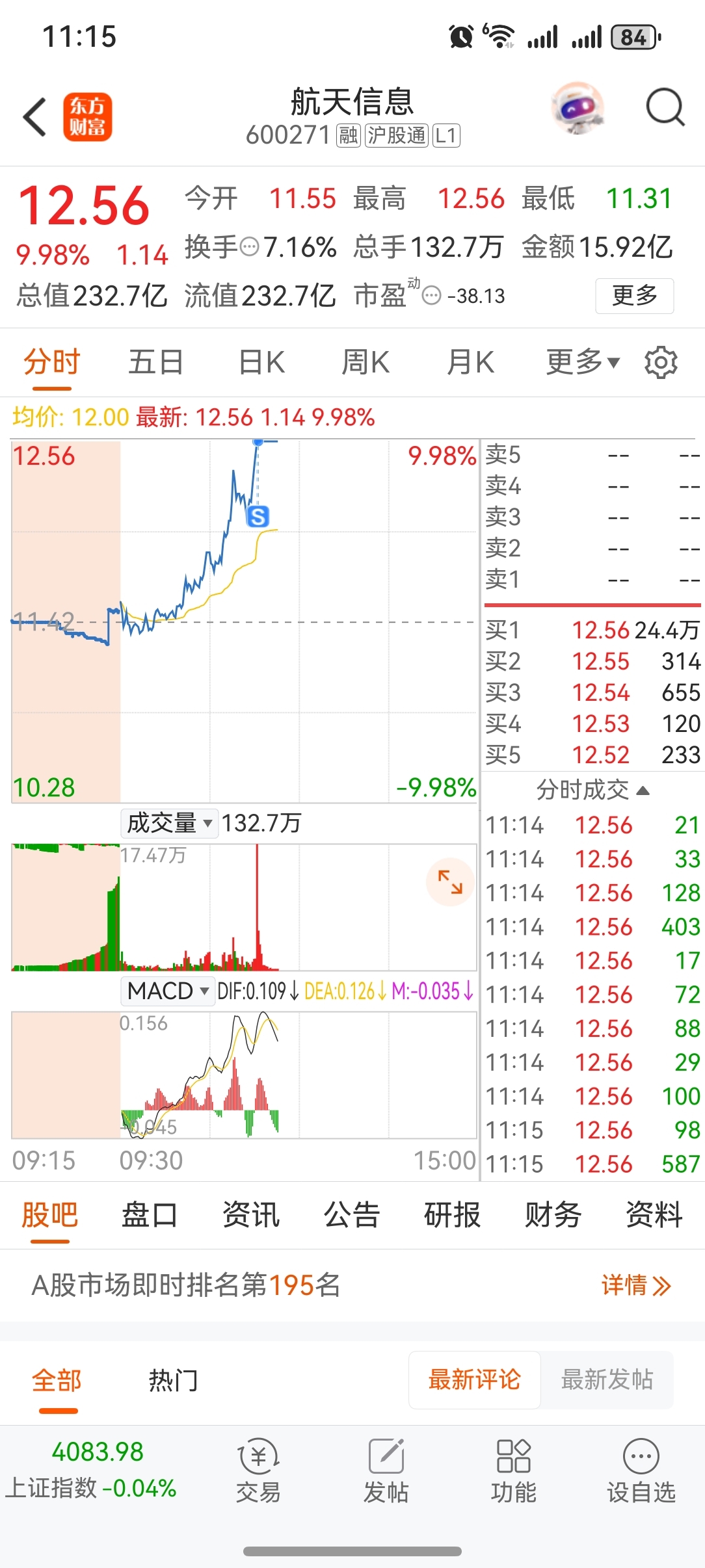 $航天信息(SH600271)$ 收了几天,卖一半,明天开盘搞