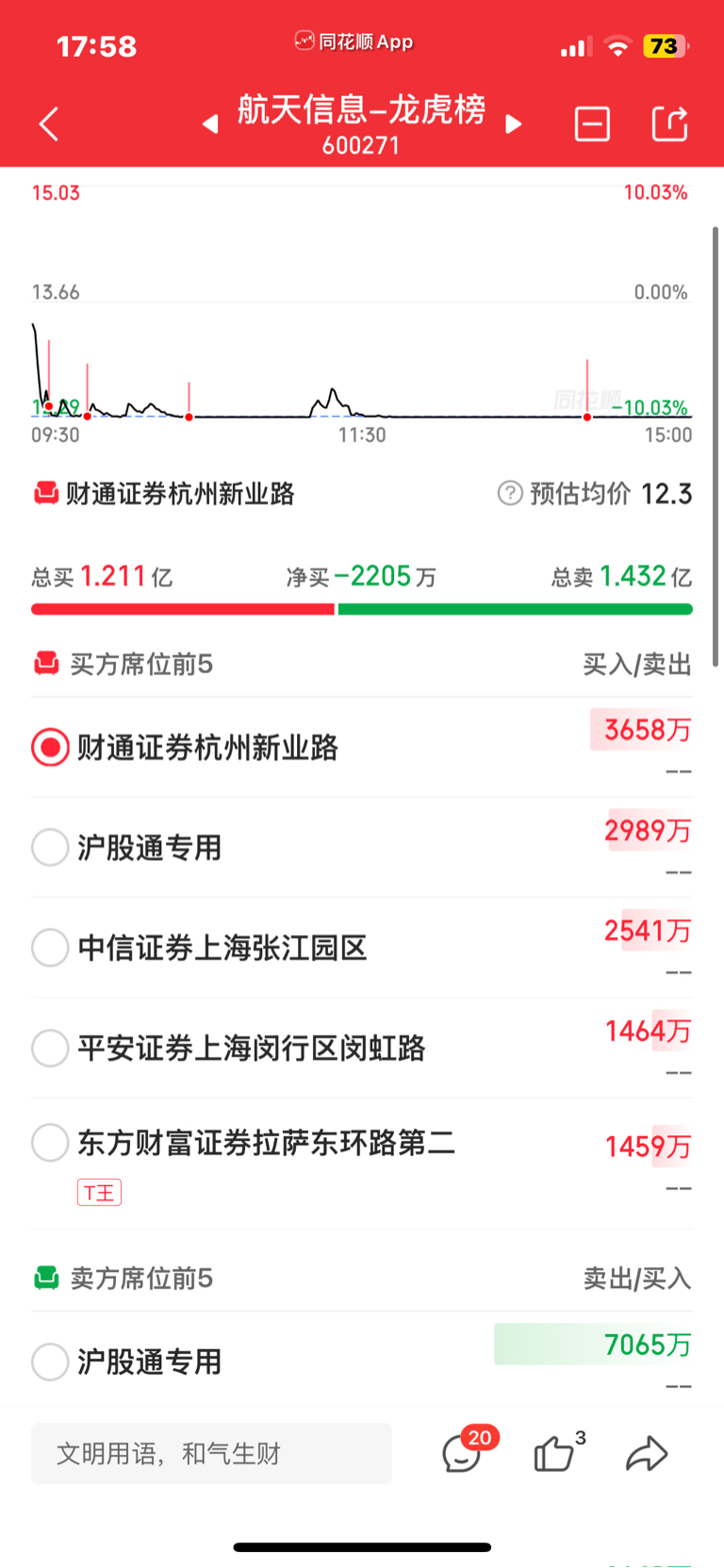 $航天信息(SH600271)$ 反正这些人跟我一起亏,明天继续跌也无所谓。一起亏等于没亏