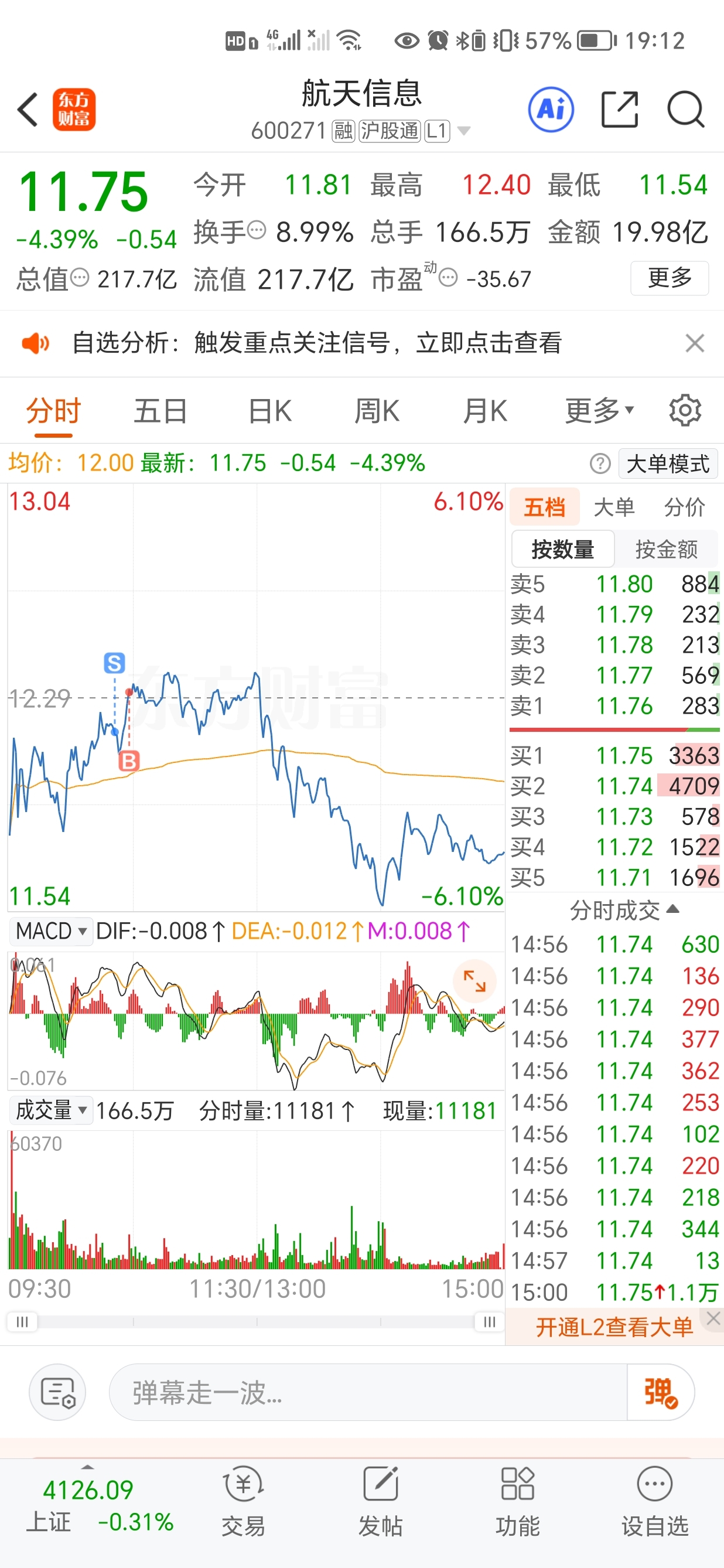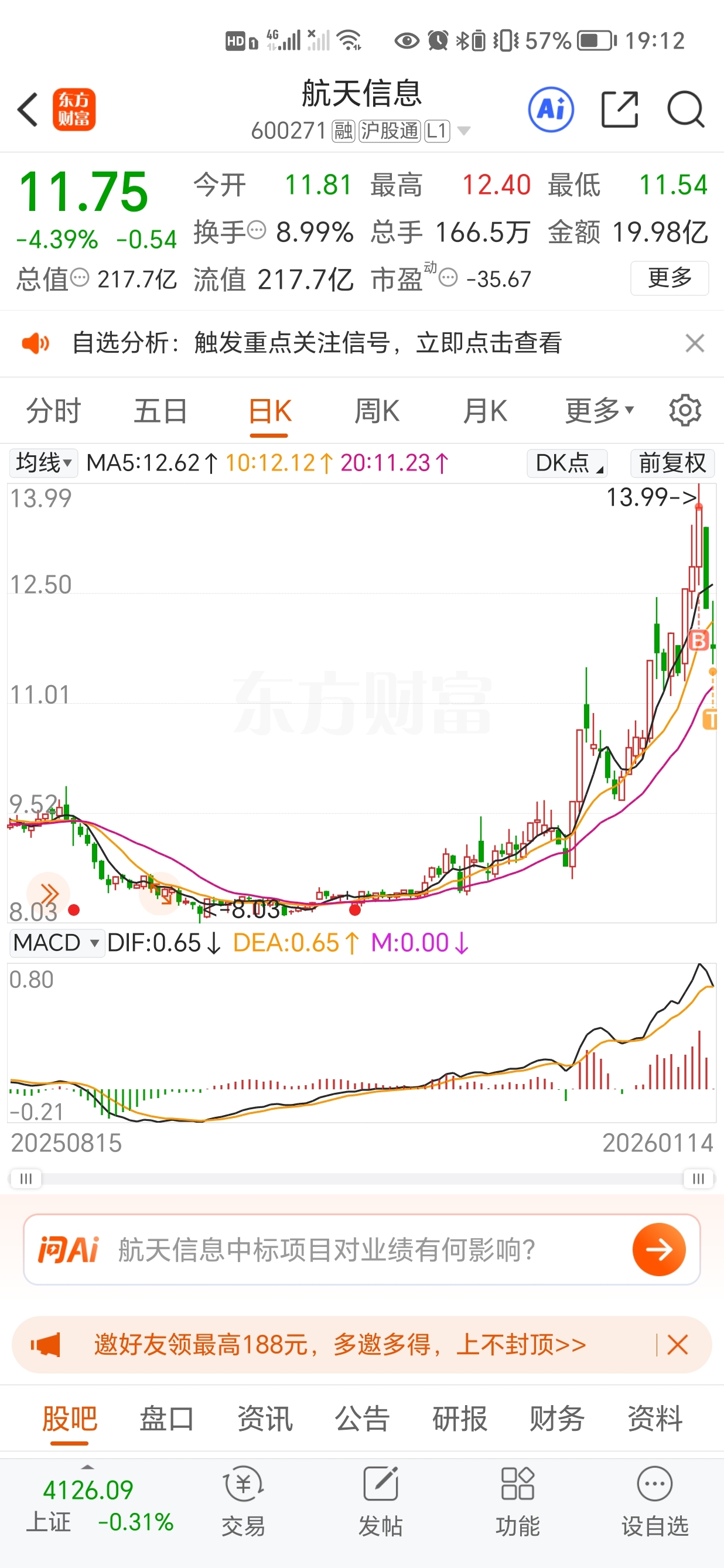 $航天信息(SH600271)$ 无语了,前天高点13.7入了,昨天直接跌停,今天想着百分百不会跌停,绿一个点全割了,它往上冲,我以为修复好了,又买了半仓想着捞点本呢,谁知道下午跳水又挨一刀,亏损成25了,这票真坑我啊,啥时候能涨回来啊