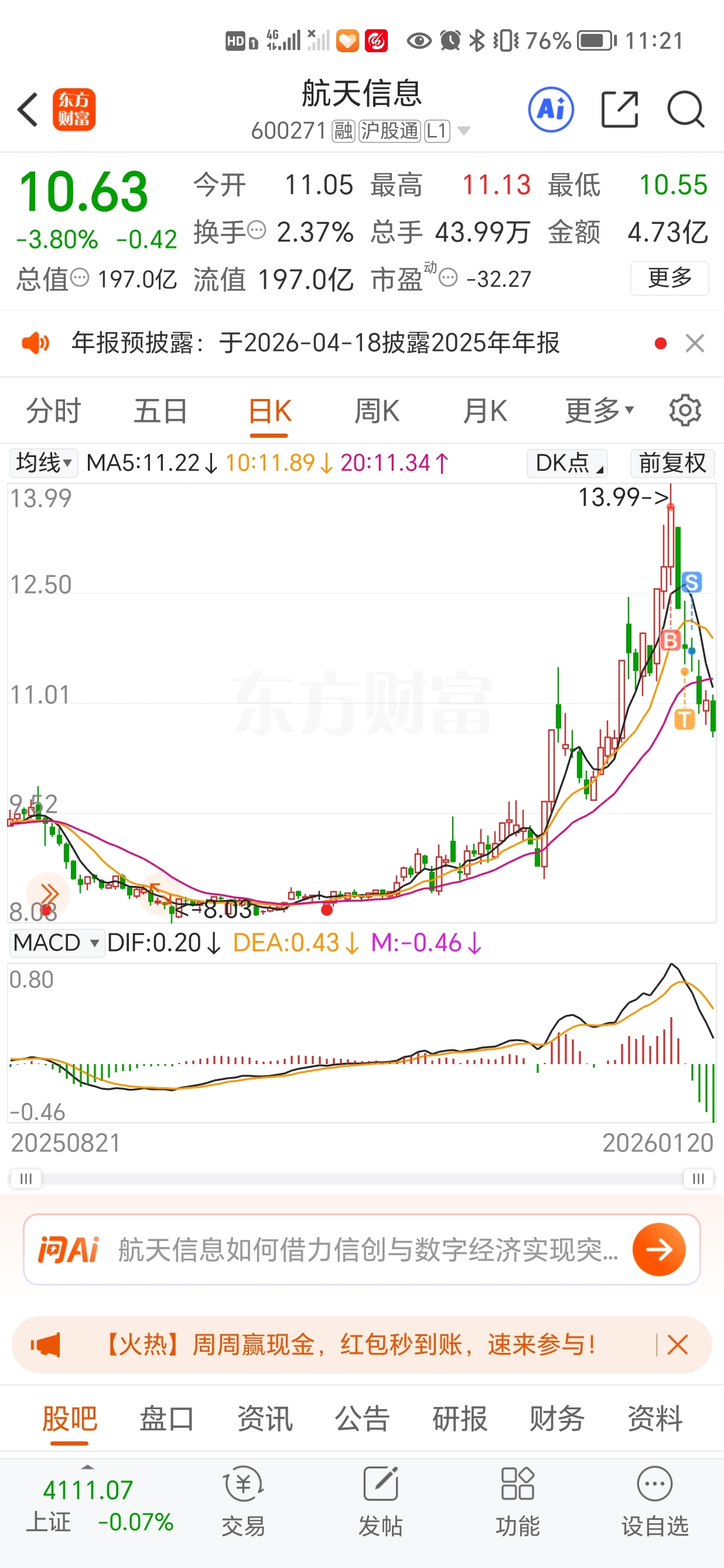 $航天信息(SH600271)$ 幸亏把它卖了,亏我最多的股,二十个点啊