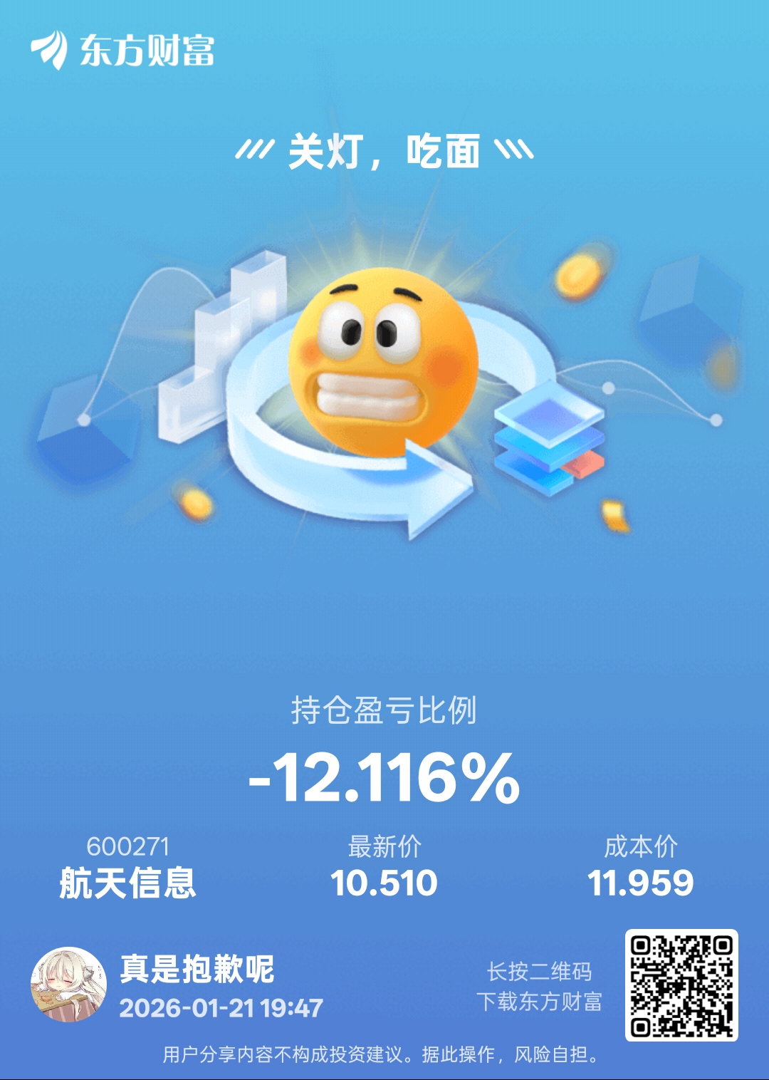 $航天信息(SH600271)$ 虽然我觉得没跌到位,我已经没有子弹了,还是奉陪到底看看啥时候反弹