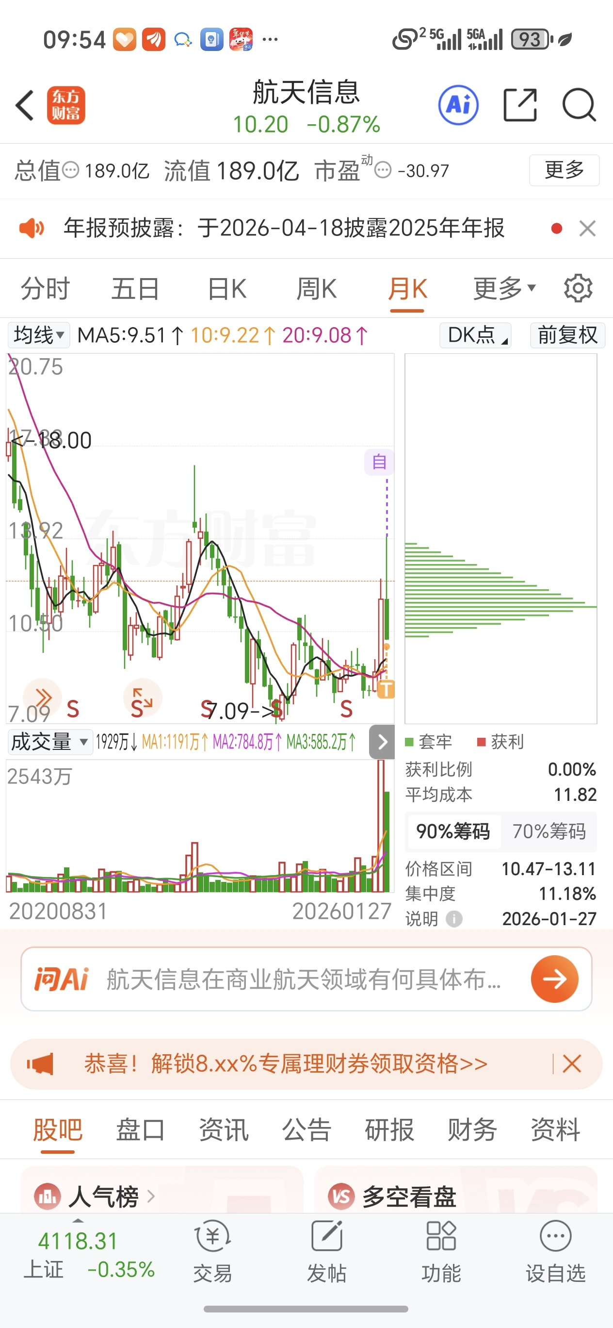 $航天信息(SH600271)$ 第一次见这种票,一个月来算大家都是亏的