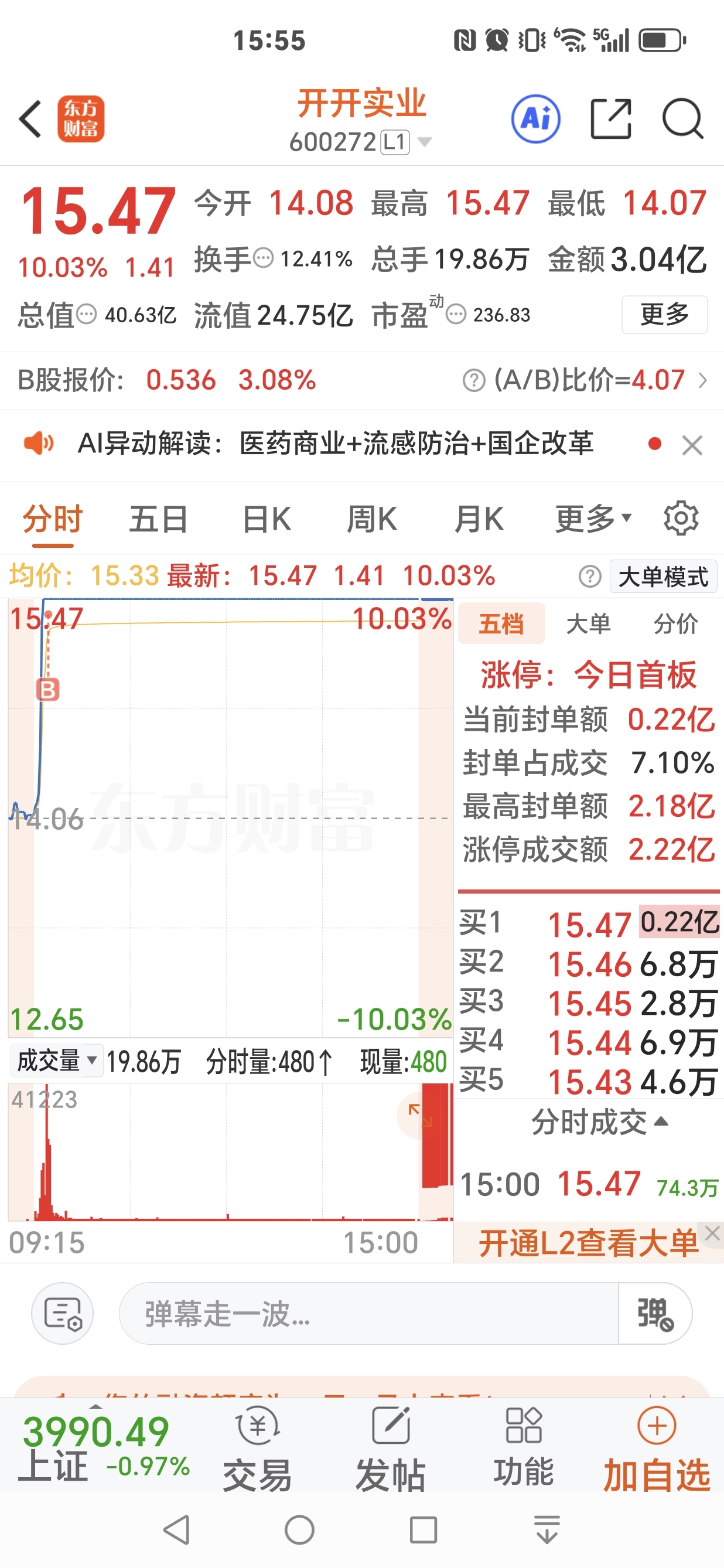 $开开实业(SH600272)$ 今天龙州排不到,退一步三毛七买这只。