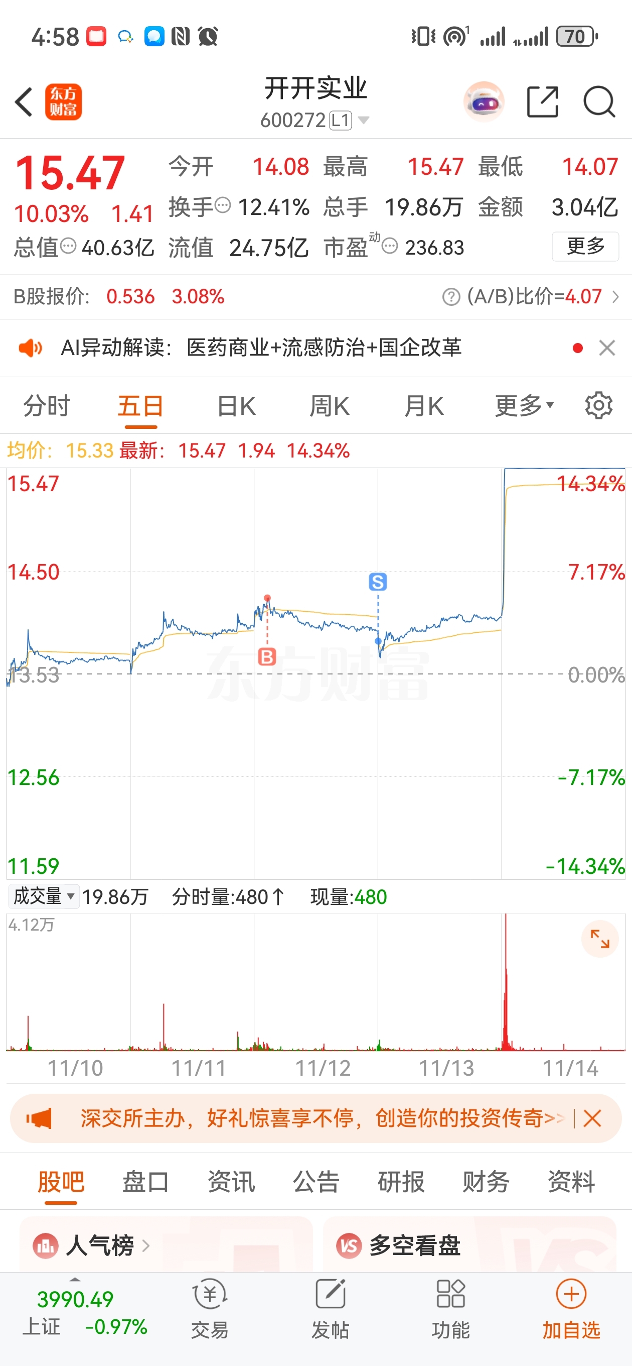 $开开实业(SH600272)$