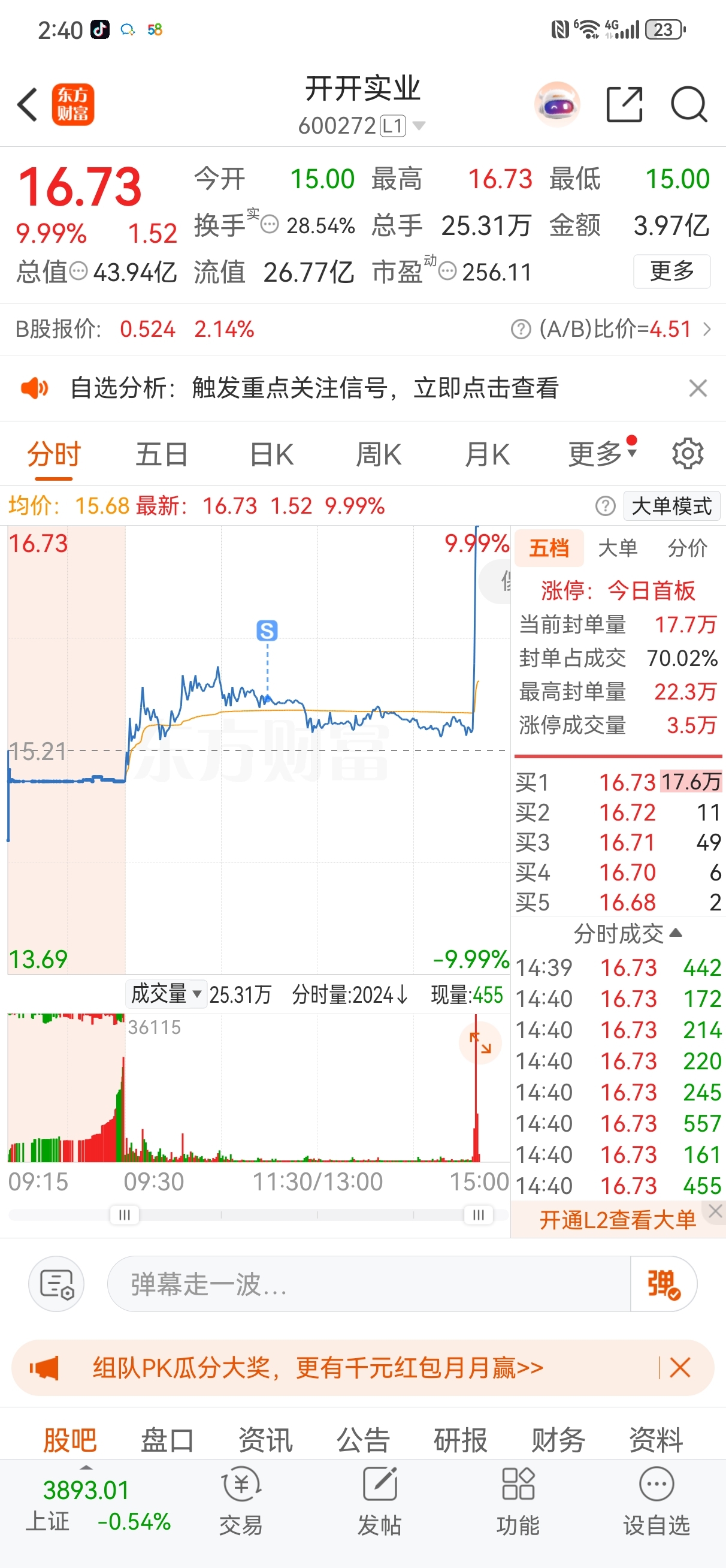 $开开实业(SH600272)$ 你听我说,谢谢你