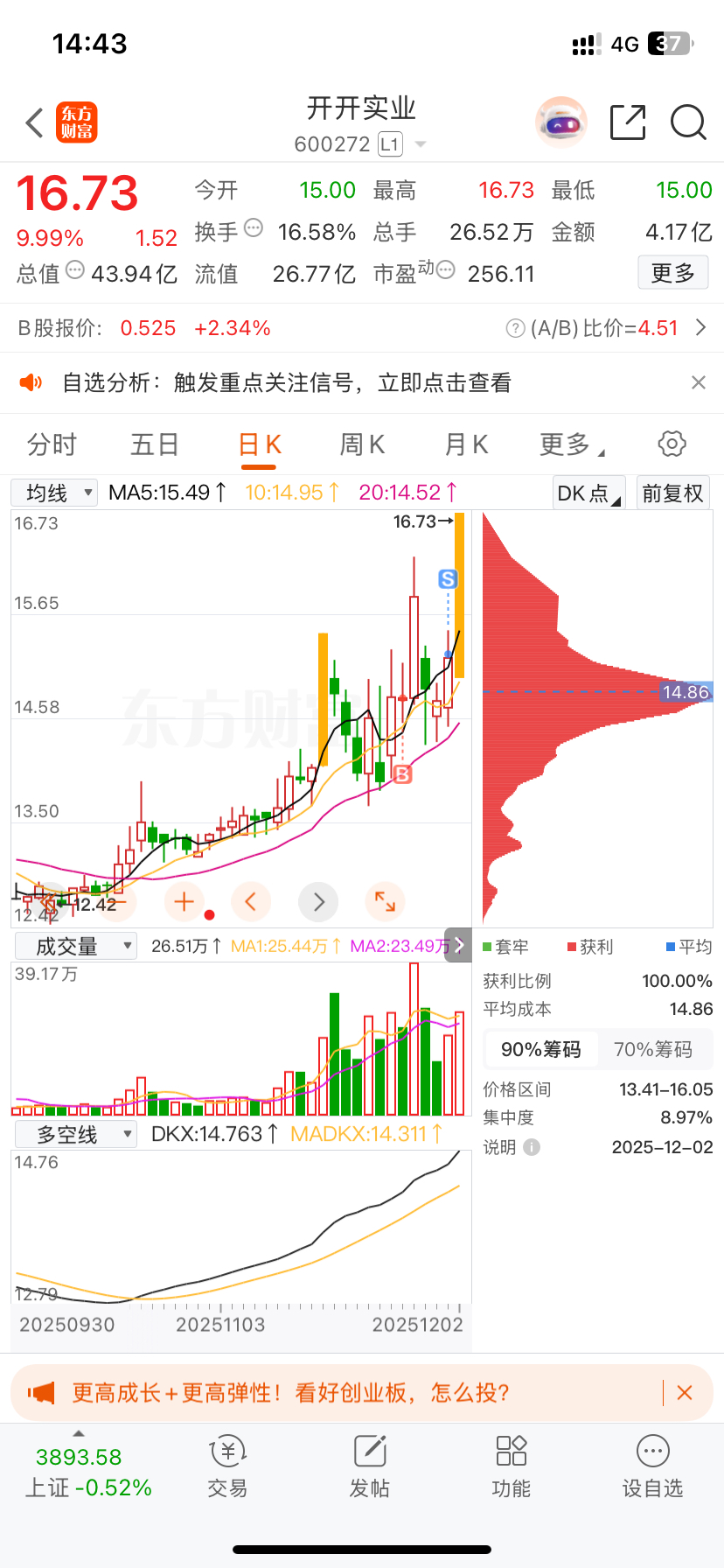 $开开实业(SH600272)$ 诶,重仓买的安妮,停牌了,想着多赚点给出了。