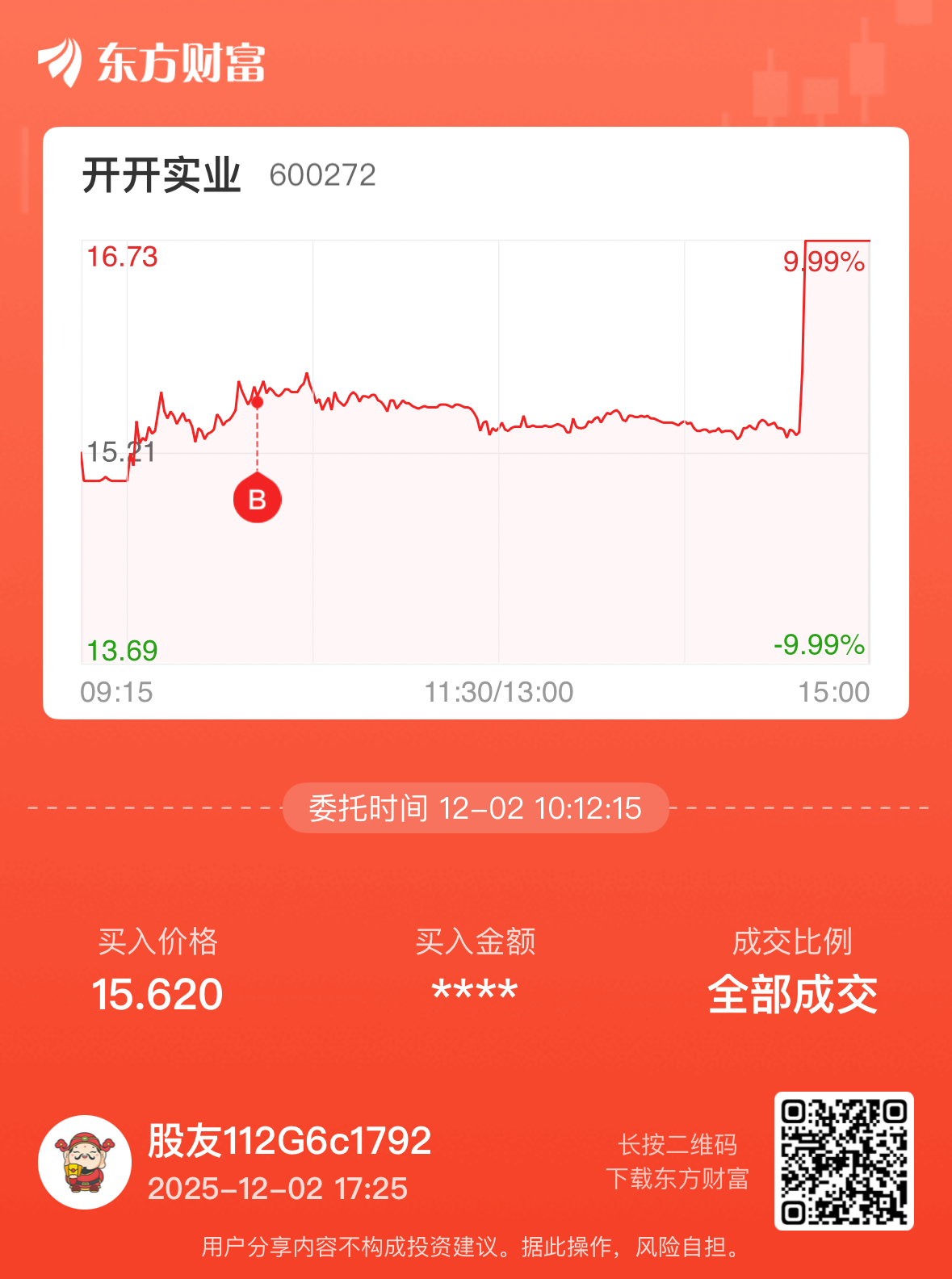 温馨提示: 1.根据《证券法》规定,禁止编造、传播虚假信息或者误导性信息,扰乱证券市场;2.用户在本社区发表的所有资料、言论等仅代表个人观点,与本网站立场无关,不对您构成任何投资建议。用户应基于自己的独立判断,自行决定证券投资并承担相应风险。《东方财富社区管理规定》