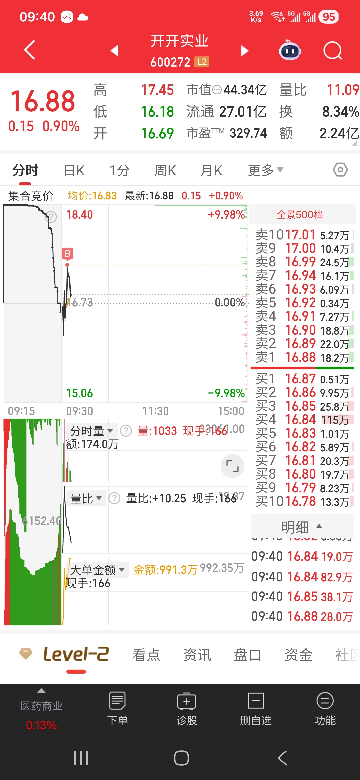 $开开实业(SH600272)$ 人才啊!量价背离还要去买