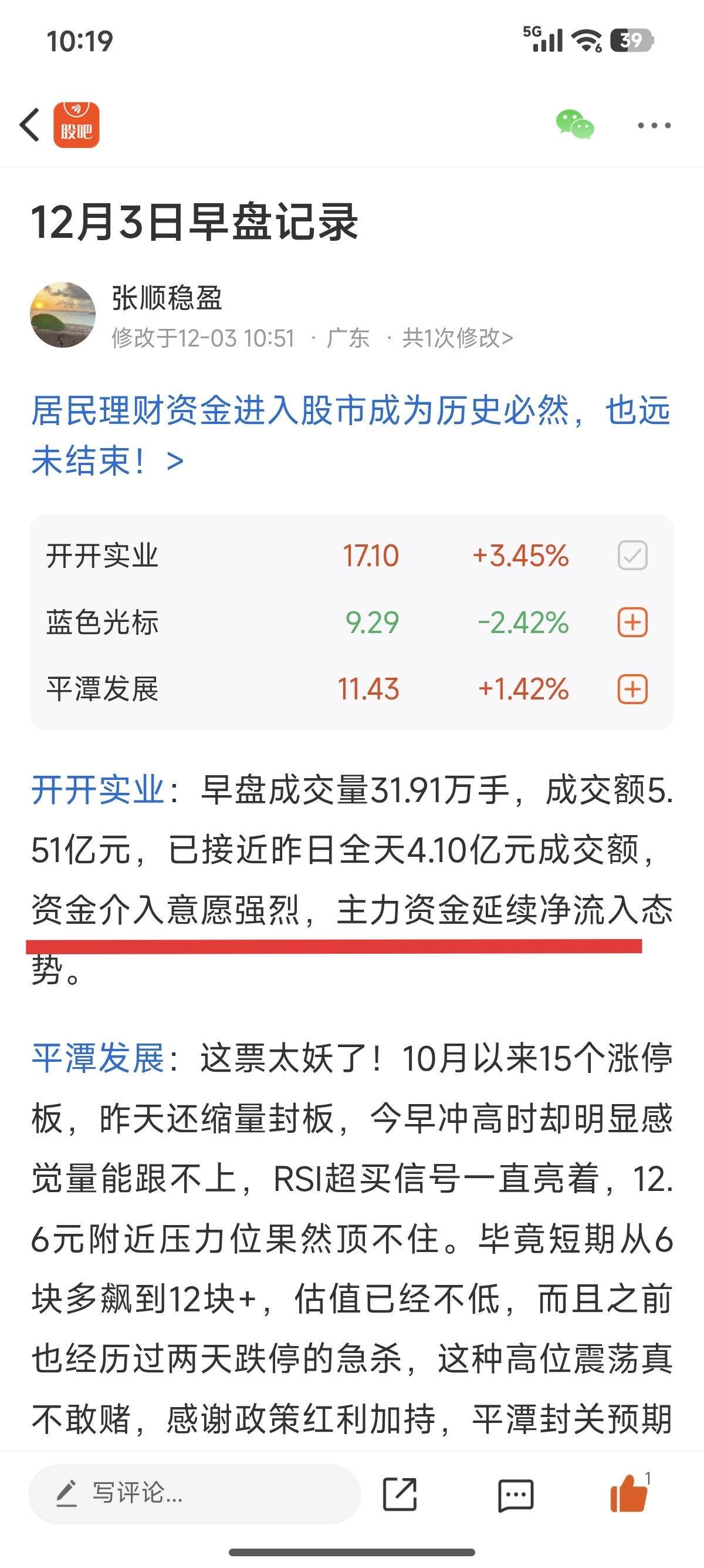 昨天盯盘发现开开实业早盘跳水回踩,果断梭哈进场!毕竟有上海国资+大健康转型的硬逻