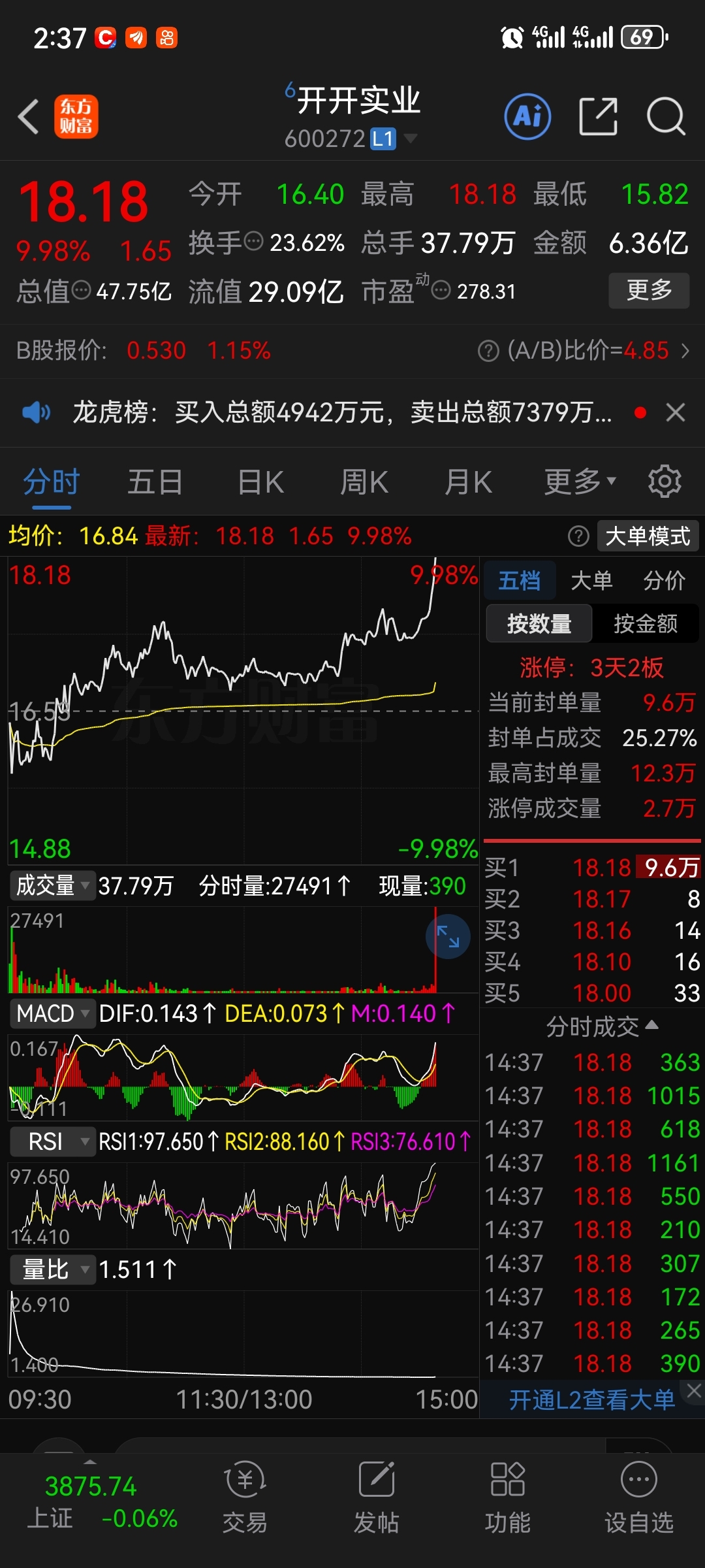 600272开开实业如期打板