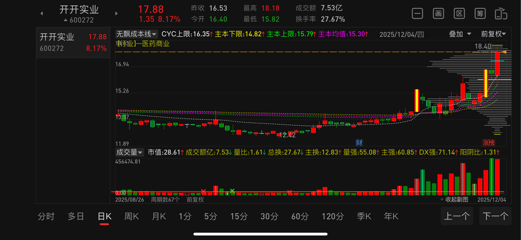 $开开实业(SH600272)$ 开在16.35之上,回踩15.79,像是划好走势一样。