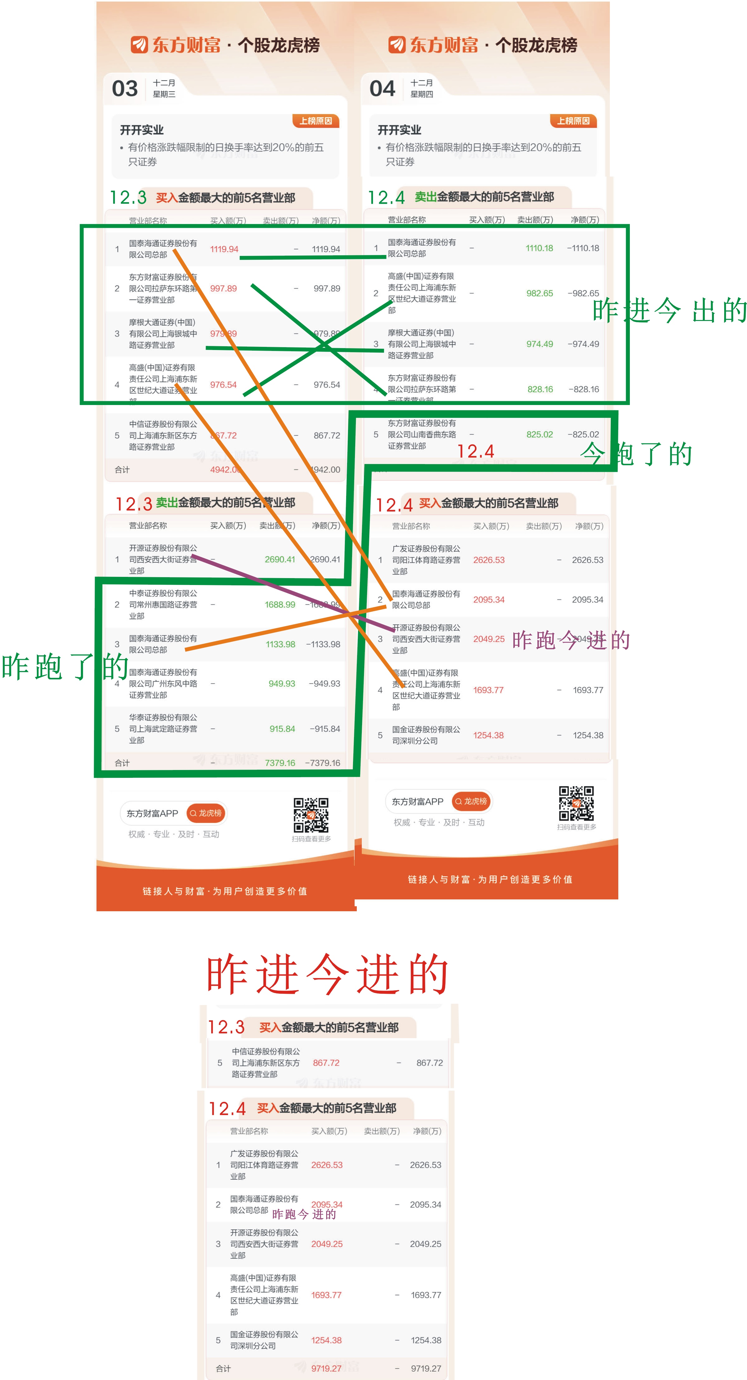 整理了一下昨天今天的龙虎榜,人老眼花,有不对的地方股友们指正