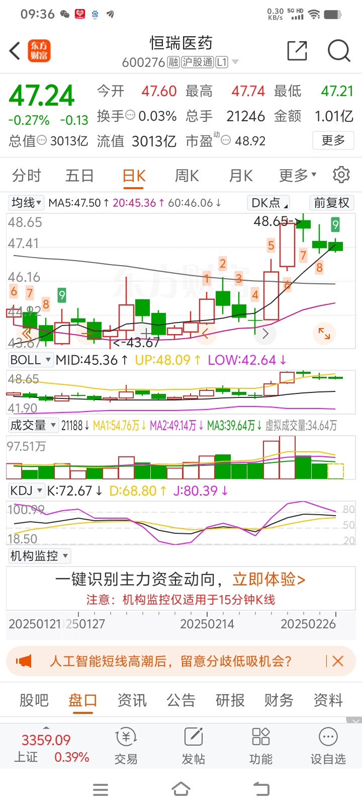 $恒瑞医药(SH600276)$ 破五日均线,是走还是留?