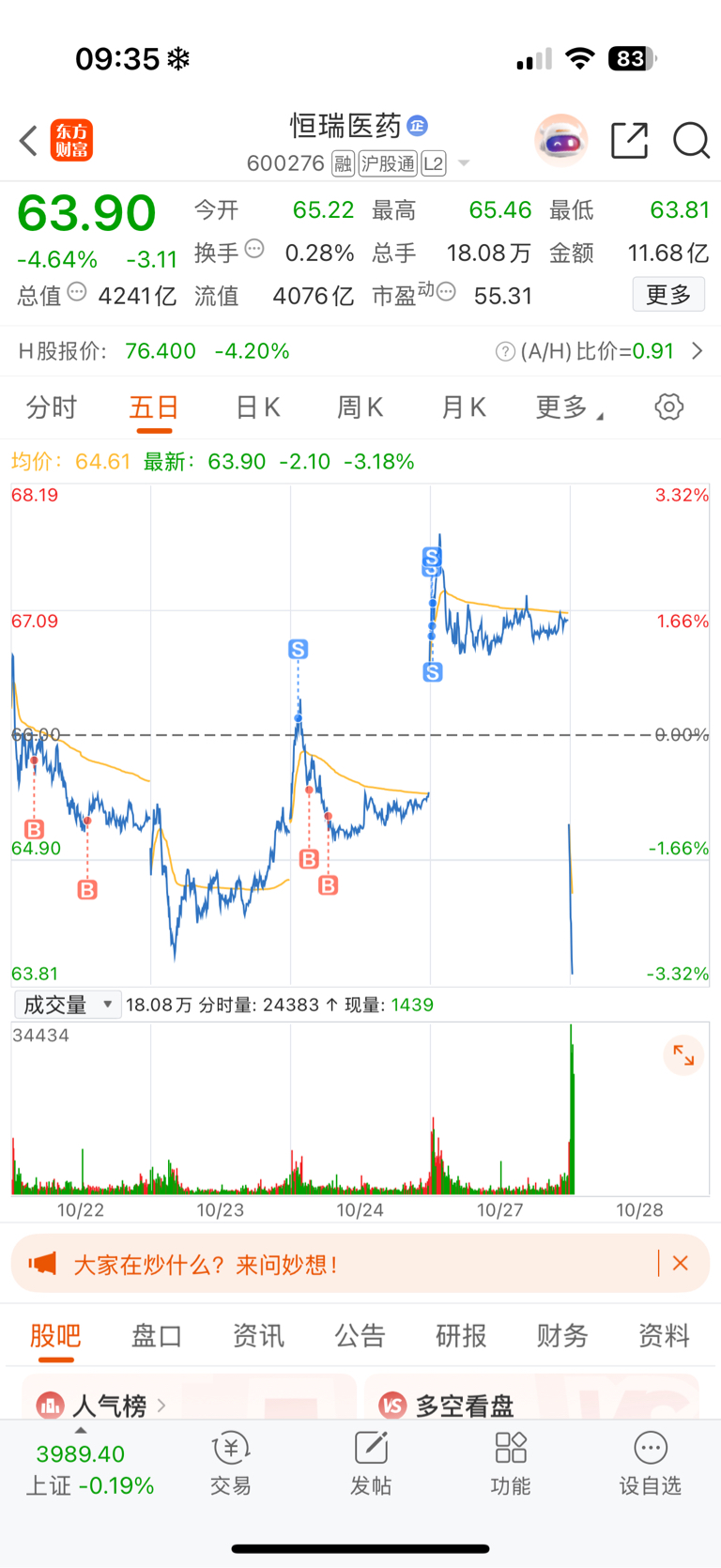 $恒瑞医药(SH600276)$ 昨天还说卖早了