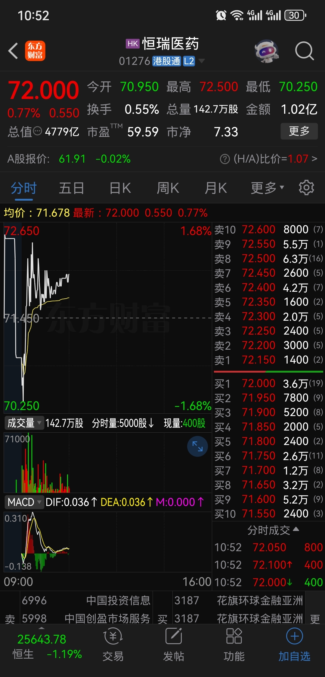 今日比港股走的差,比药明也走的差!港股涨1个点了马上