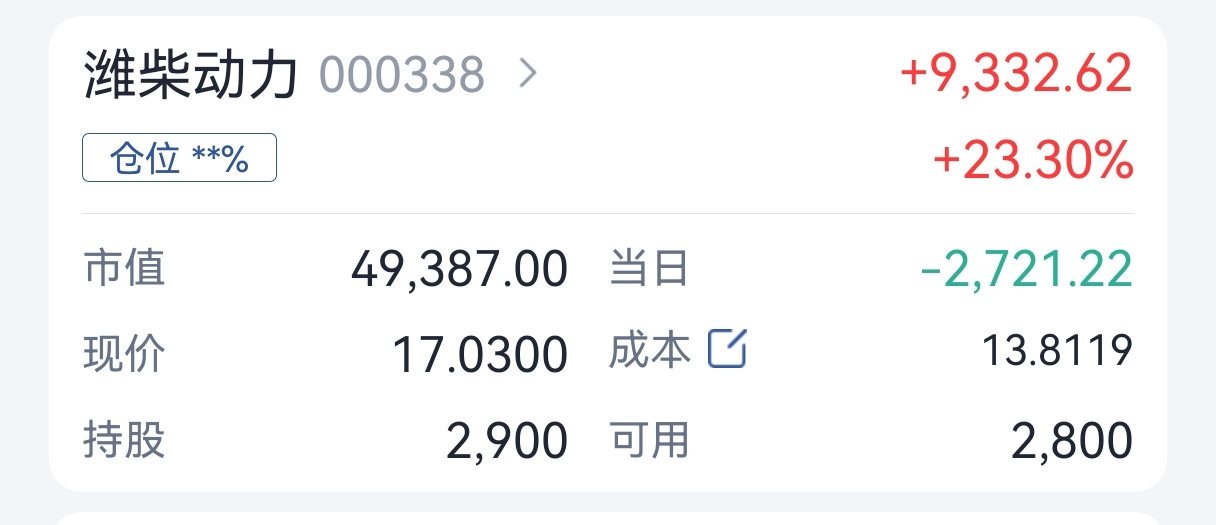 股票嘛!涨涨跌跌都挺正常!就看你自己是不是能把米揣兜里!我其他两个共计不到5%浮