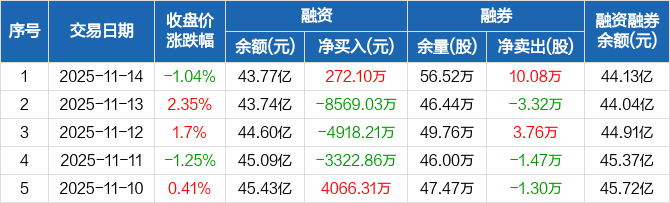 恒瑞医药:融资净买入272.1万元,融资余额43.77亿元(11-14)
