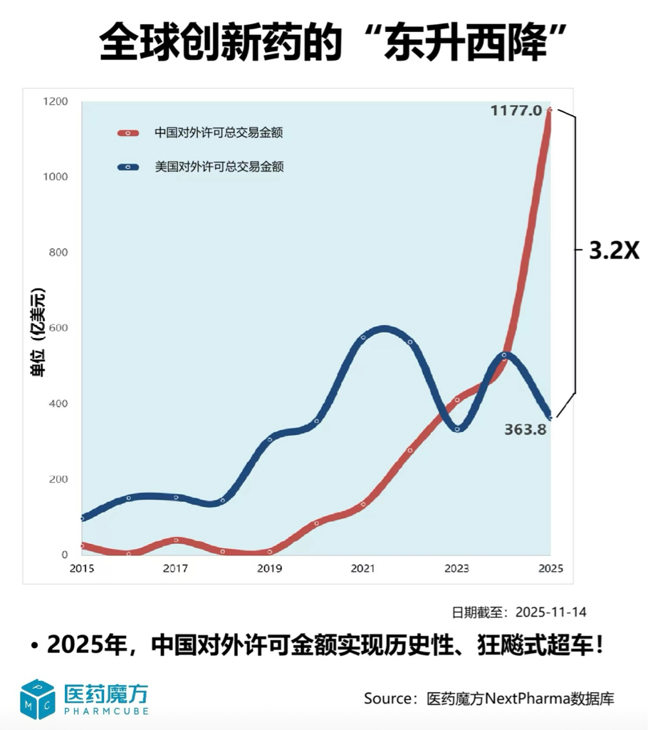 创新药正东升西降:中美对外许可金额大PK2025年,中国对外许可(Lisence