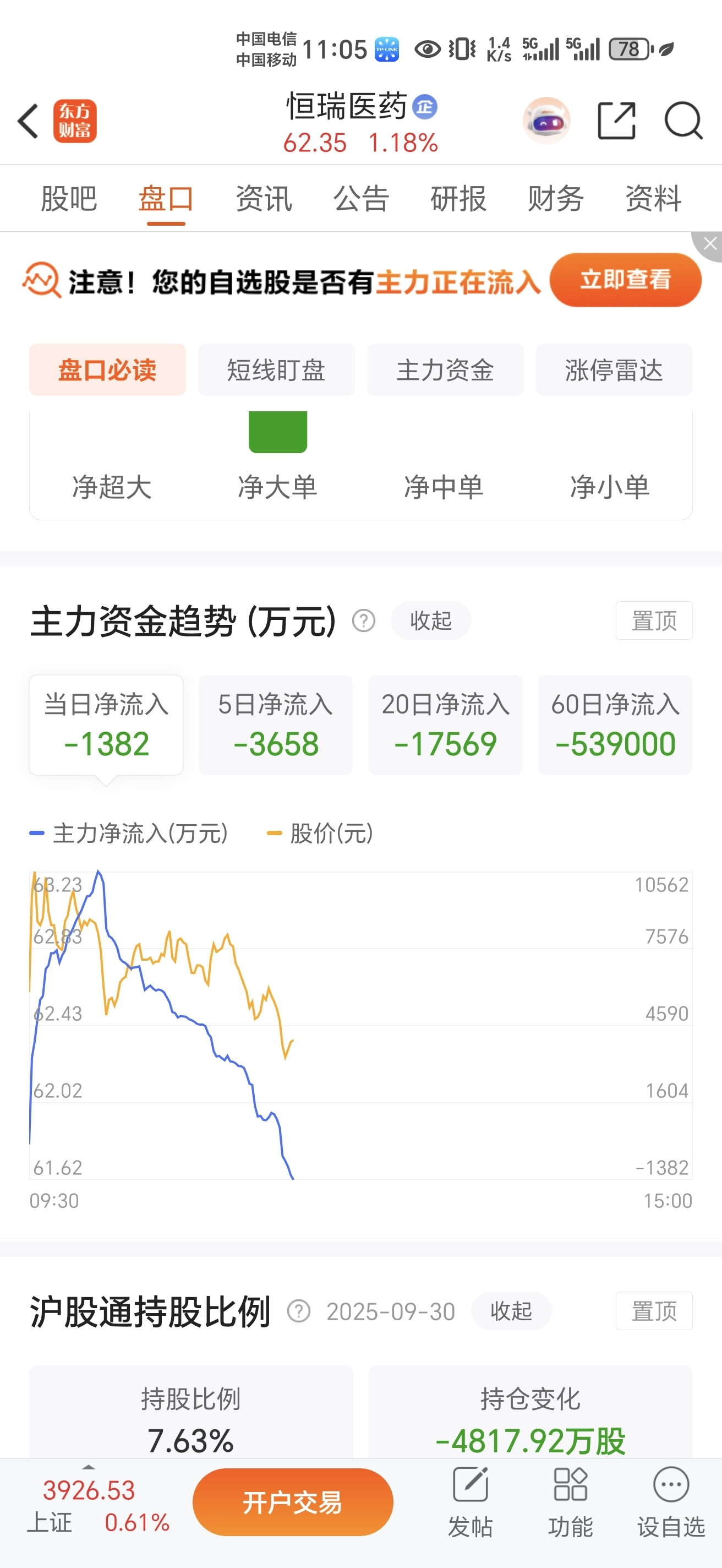 $恒瑞医药(SH600276)$ 好一个反向趋势。这一波追高的几年能解套。
