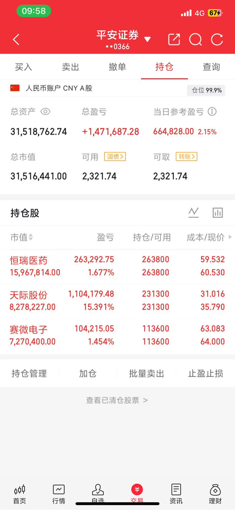 12.18继续持有 $恒瑞医药(SH600276)$ $天际股份(SZ002759)$ $赛微电子(SZ300456)$ 这支具备增长潜力,我满怀期待,相信随着后续市场的发展,达成盈利目标。