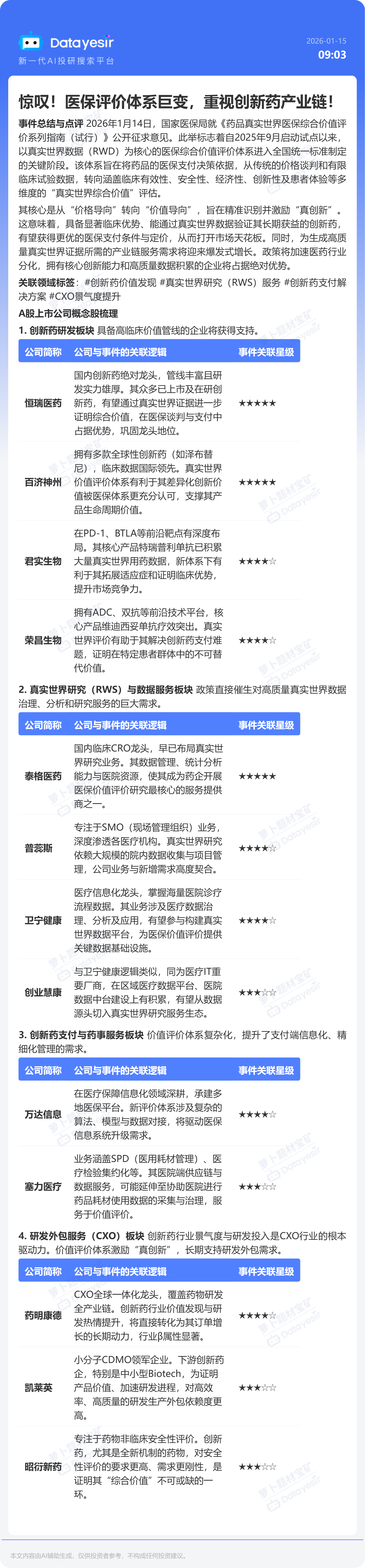惊叹!医保评价体系巨变,重视创新药产业链!