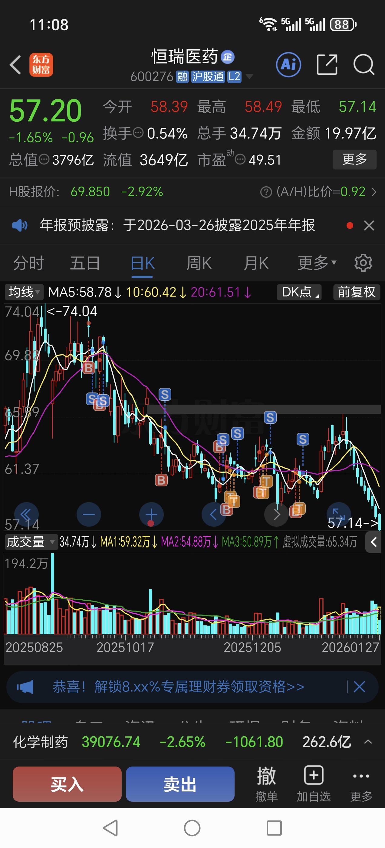 $恒瑞医药(SH600276)$ 十几连阴