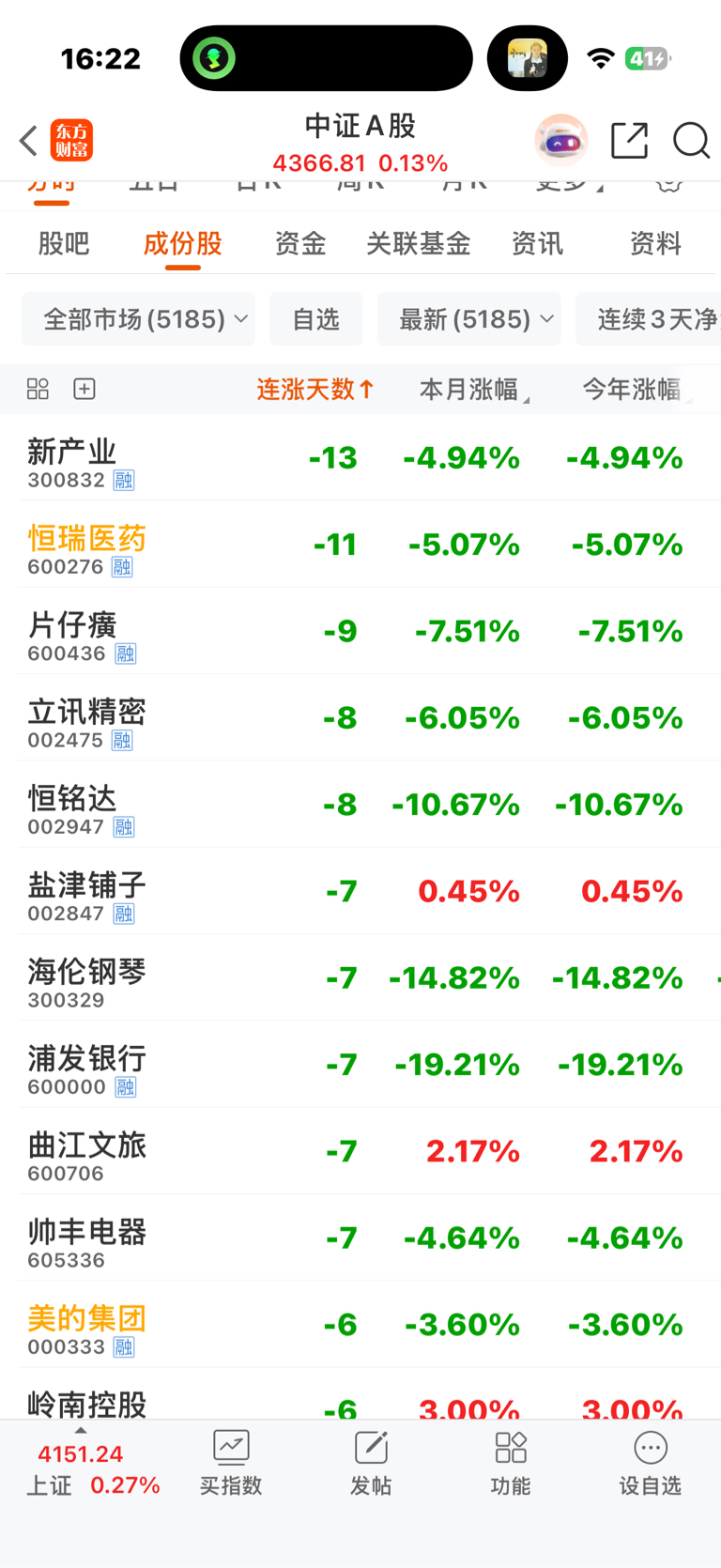连涨天数