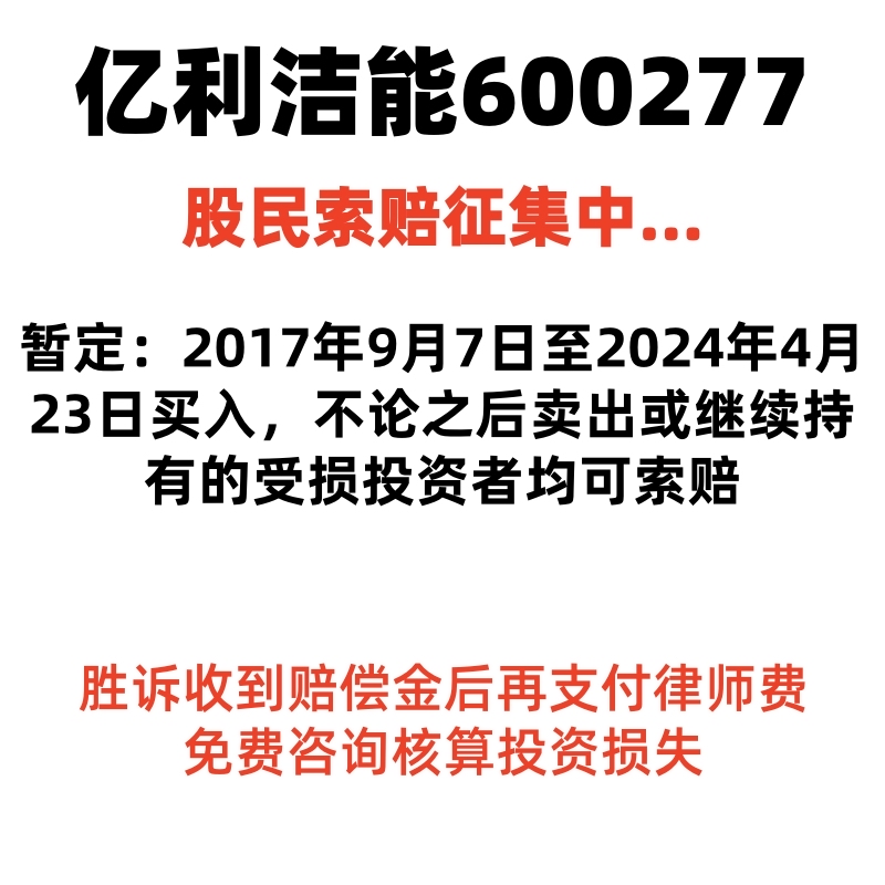 $ST亿利(SH600277)$ 2017年09月07日至2024年04月23日(含)期间有买入,无论之后卖出或继续持有的受损投资者可联系索赔@索赔倒计时