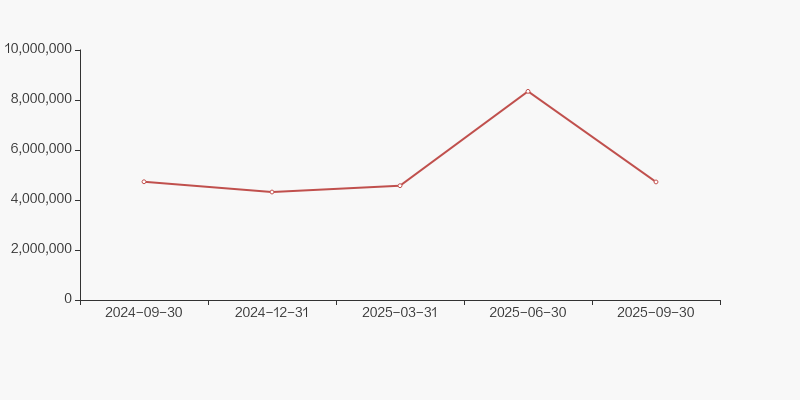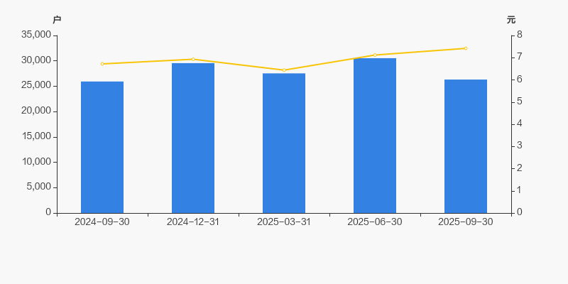 截至2025年9月30日,公司最新总股本为8.77亿股,其中流通股本为8.72亿股。户均持有流通股数量由上期的2.86万股上升至3.31万股,户均流通市值24.59万元。