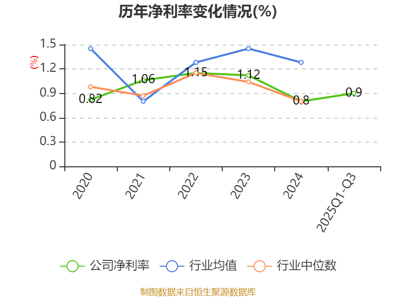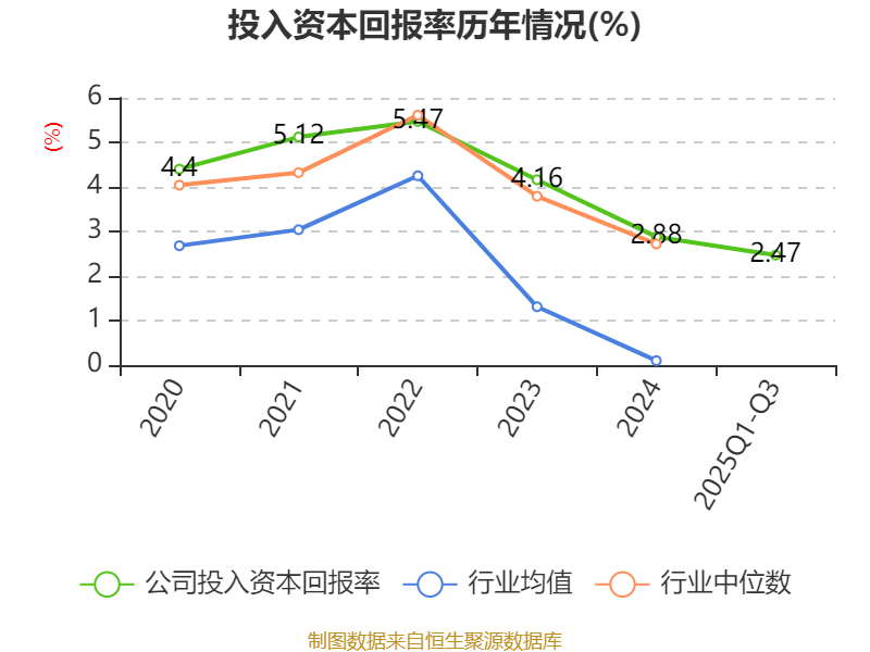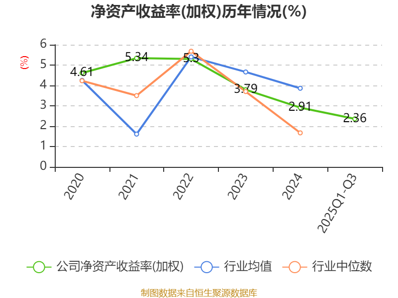 盈利能力方面, 2025年前三季度公司加权平均净资产收益率为2.36%,同比下降0.16个百分点。公司2025年前三季度投入资本回报率为2.47%,较上年同期下降0.07个百分点。