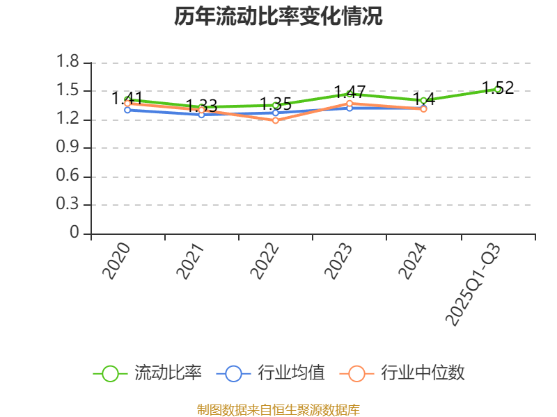2025年前三季度,公司流动比率为1.52,速动比率为1.2。