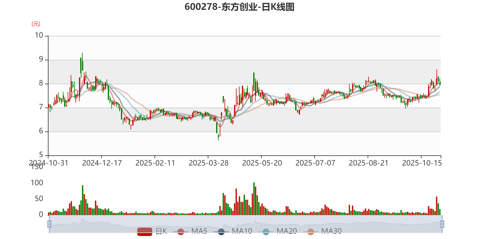 以10月30日收盘价计算,东方创业目前市盈率(TTM)约为33.31倍,市净率(LF)约0.9倍,市销率(TTM)约0.19倍。