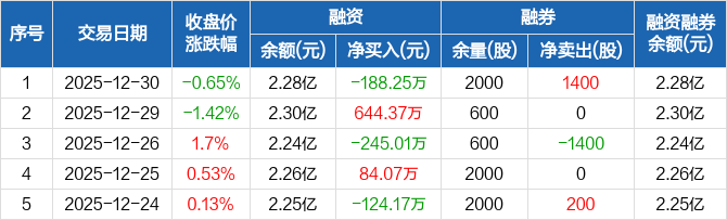 东方创业:融资净偿还188.25万元,融资余额2.28亿元(12-30)