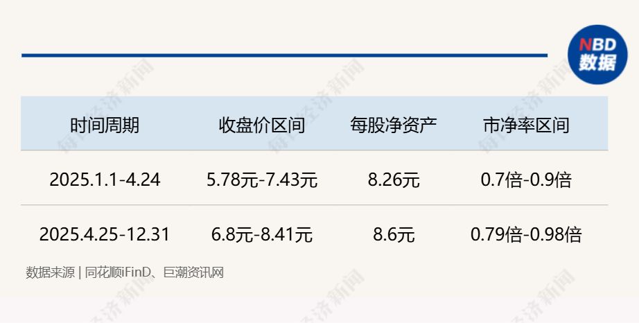 根据公司公告,东方创业本次估值提升计划的推出,源于股票长期破净的刚性触发情形。公告显示,自2025年1月1日至2025年12月31日,公司股票处于低位波动,已连续12个月每个交易日收盘价均低于最近一个会计年度经审计的每股净资产。其中2025年1月1日至4月24日,每日收盘价均低于2023年经审计每股净资产8.26元;2025年4月25日至12月31日,每日收盘价均低于2024年经审计每股净资产8.60元。以2025年4月8日年度最低收盘价5.78元计算,公司市净率仅约0.7倍,而以11月3日年度最高收盘价8.41元计算,市净率约0.98倍,均小于1,全年均处于破净状态。