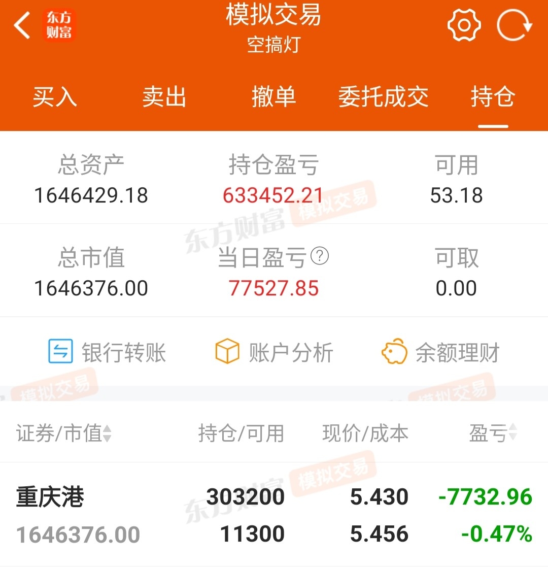 我已模拟全仓买入重庆港,陪伴一年