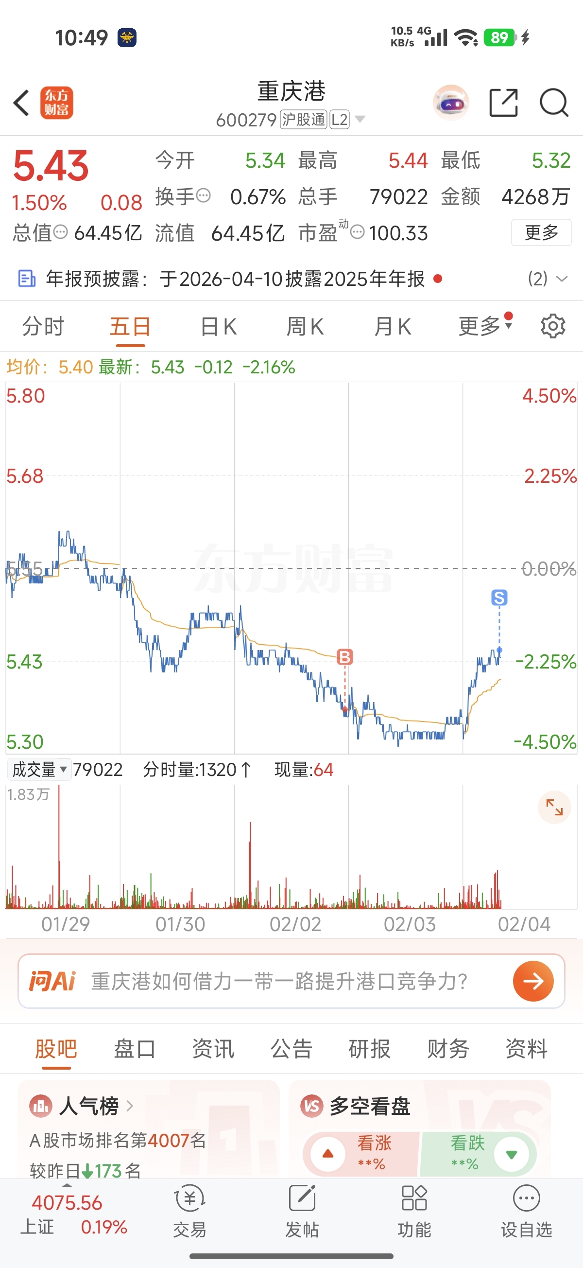 $重庆港(SH600279)$ 赚点就卖,不贪心。再涨了继续卖点。跌到5.2-5.3继续买。